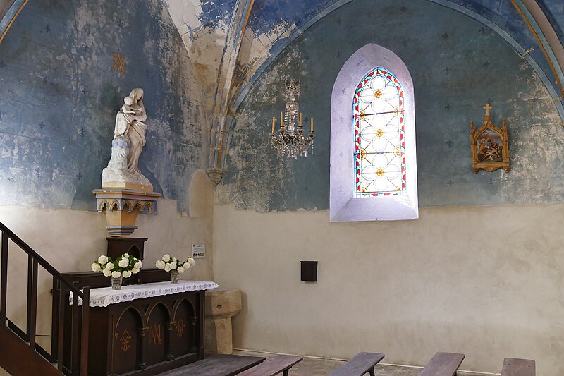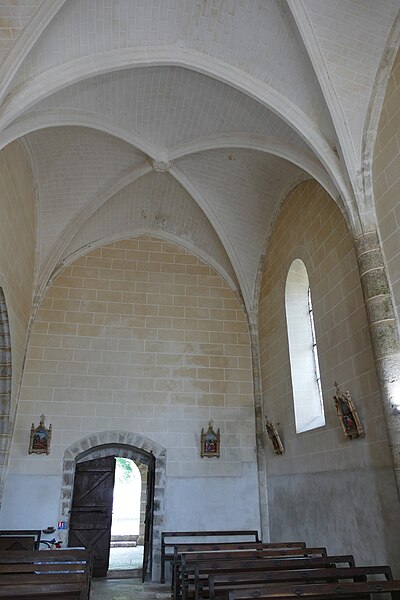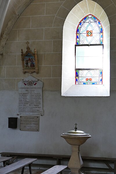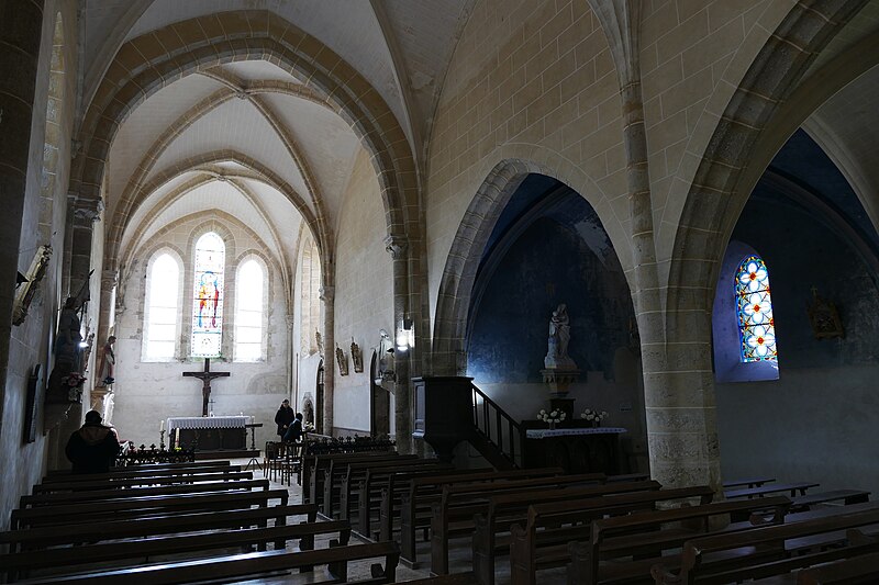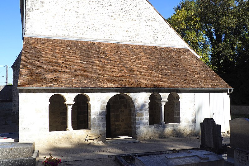 L'église Saint-Aubin conserve des éléments datant principalement des XIIIe et XVe siècles. Le clocher, de style roman, et le chœur à deux travées appartiennent au XIIIe siècle. La nef et le bas-côté relèvent du XVe siècle ; la fenêtre nord de la première travée de la nef est moderne, tandis que celle de la seconde travée est d'origine XIIIe siècle. Le porche pourrait également dater du XVe siècle. Des travaux de restauration ont été menés en 1868 et la sacristie a été construite en 1889. Un coq en zinc, daté du 6 septembre 1833, orne le clocher.