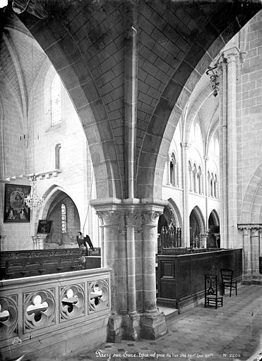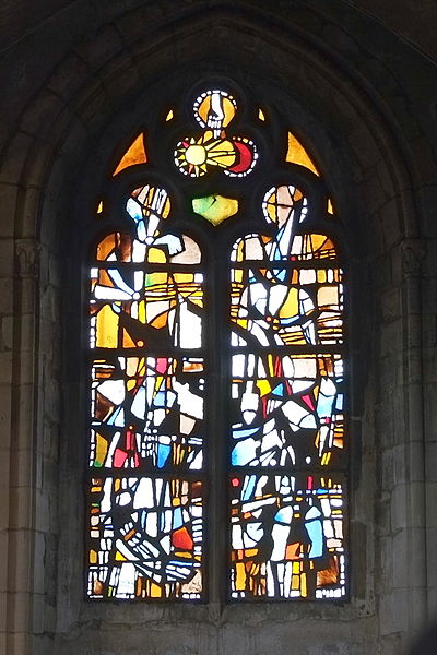L'église Saint-Aubin, située à Pacy-sur-Eure dans l'Eure, est placée sous le vocable de saint Aubin, évêque d'Angers au VIe siècle, et est inscrite au titre des monuments historiques depuis le 26 décembre 1927. Une église primitive, donnée par Guillaume Fitz Osbern en 1050 à l'abbaye de Lyre, se dressait à l'emplacement de l'édifice actuel. L'édifice principal a été construit dans les quarante premières années du XIIIe siècle et a fait l'objet de modifications à la fin du XIVe ou au début du XVe siècle. La majorité des maçonneries est en pierre de Vernon, incrustée de silex noir, matériau courant à l'époque et largement exporté. De plan cruciforme à chevet plat, l'église a été édifiée dans la première moitié du XIIIe siècle : les premières travées, datées vers 1210, montrent une influence chartraine pour les piliers, tandis que les travées suivantes, le transept et les parties basses du chœur, datent d'environ 1220 et relèvent d'une influence rouennaise. Les voûtes du chœur et du carré du transept datent du XVe siècle, tandis que celles de la nef datent de 1869. La voûte du croisillon nord présente un œil destiné au passage des cloches, vestige de la position de l'ancien clocher ; le clocher actuel s'élève au carré du transept, de plan octogonal et surmonté d'une courte flèche. De nombreuses restaurations se sont succédé aux XIXe et XXe siècles : repavage du chœur en 1835, reconstruction des voûtes de la nef en 1869, restauration de la chapelle Saint-Nicolas en 1873, construction d'une tourelle d'escalier sur la façade occidentale en 1898, création d'une nouvelle sacristie en 1903 et restauration de la chapelle de la Vierge en 1904 ; des travaux de restauration sont également menés depuis 1990. Des interventions antérieures ont eu lieu aux XVIe, XVIIIe et XIXe siècles : les portes et vitraux ont été modifiés le 19 avril 1526, d'importants travaux sont signalés en 1698 à l'intérieur et au clocher, et le clocher est réparé après un orage en août 1729. Au XIXe siècle, la municipalité et la fabrique ont conduit des réparations extérieures et des travaux de confortement des couvertures, repavage du chœur et ouverture de grandes verrières ; la nef a été profondément transformée lors de la mise en place d'un voûtement d'ogives remplaçant la charpente lambrissée. L'église avait été classée au titre des monuments historiques en 1875 puis déclassée en 1886 pour absence d'accord des autorités compétentes, avant d'être inscrite en 1927. Les archives médiévales de la ville ayant été détruites par un incendie, peu de documents anciens subsistent ; les sources relatives aux travaux modernes et contemporains sont consultables aux archives départementales de l'Eure. Les murs conservent des restes de peintures murales et de polychromie en mauvais état : les chapiteaux des piles centrales montrent des tons jaune à ocre soulignant des feuilles stylisées, une pile cylindrique nord porte les restes d'une feuille de vigne et de teintes de carnation (que l'abbé Quesnel identifiait à un ange) et le transept présente un motif d'étoiles sur fond bleu. Une copie inversée de L'Érection de la Croix de Charles Le Brun figure parmi les peintures sur toile, l'original étant conservé au musée des Beaux-Arts de Troyes. Les vitraux comprennent un fragment polychrome du XVIe siècle représentant saint Nicolas dans le transept ouest, un triplet du chevet de François Décorchemont (1951) représentant l'Assomption, un vitrail non figuratif à dominante bleue de J.P. Tisserand dans la chapelle latérale nord, deux vitraux de Décorchemont dans la chapelle latérale sud (1953-1957) et un vitrail au-dessus du portail occidental portant le portrait du donateur (1900). Le mobilier et la statuaire comprennent un maître-autel composé de quatre panneaux en pâte de verre coulée dans du ciment par François Décorchemont, des porte-cierges en forme d'ibis du même artiste, une Pietà avec Marie-Madeleine du XVIe siècle, une Sainte Anne avec la Vierge enfant en polychromie du XVIe siècle, une sculpture en pierre du XVIe siècle représentant saint Michel terrassant le dragon dans la chapelle nord, ainsi qu'une Vierge à l'Enfant attribuée à Germain Pilon, du XVIe siècle, provenant de la chapelle funéraire de Diane de Poitiers à Anet ; les bancs à dossier du chœur datent de l'époque Louis XIV. Les grandes orgues, provenant de l'église Saint-Désir de Lisieux et datées du XIXe siècle, ont été installées en 1900 ; elles comportent deux claviers, un pédalier et vingt registres.