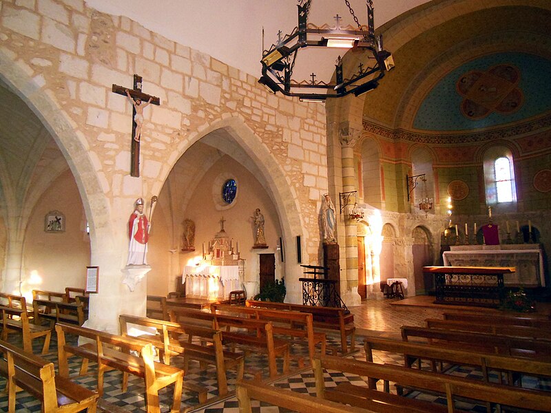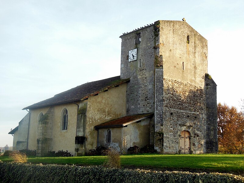 L'église Saint-Aubin, érigée sur une butte à Saint-Aubin dans les Landes, se compose d'une tour-clocher fortifiée, d'une nef de deux travées prolongée au nord par un collatéral, et d'une abside semi-circulaire. La partie la plus ancienne remonte à la seconde moitié du XIIe siècle ; le chœur roman est décoré d'une arcature à dix arcades dont l'un des chapiteaux représente le sacrifice d'Abraham. Un chapiteau de l'arc triomphal illustre le prophète Daniel dans la fosse aux lions. À l'extérieur, les fenêtres s'ouvrent sous des arcades encadrées par des colonnettes et des chapiteaux. Fortifiée au XIVe siècle, l'église a vu s'élever à l'ouest une tour-clocher massive, les murs de la nef ont été exhaussés et la quatrième face a été bâtie au-dessus d'un grand arc transversal. Une voûte lancée sur la nef à la même époque a été détruite en 1569 par le capitaine huguenot Castaignet ; il n'en subsiste que quelques départs de nervures. En revanche, les voûtes du collatéral nord, élevées au début du XVIe siècle, ont été préservées. La chaire en pierre, réalisée en 1764 par Jean Labat à la demande du curé M. Delisle, est l'un des rares exemples conservés dans les Landes, avec celles d'Audignon, de Brocas à Montaut et de Saint-Jean d'Aulès à Doazit. Parmi les éléments mobiliers et décoratifs figurent un vitrail représentant saint Aubin, des portes et un bénitier associés aux cagots, ainsi que les chapiteaux sculptés déjà mentionnés. L'édifice est inscrit au titre des monuments historiques depuis le 17 avril 2007.