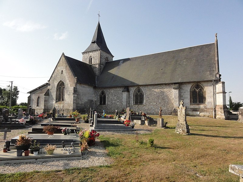 L'église Saint-Aubin, située à Saint-Aubin-de-Crétot dans le département de la Seine-Maritime, est inscrite au titre des monuments historiques le 19 juillet 1926. L'édifice, construit en pierre et silex, conserve des vestiges du XIIe siècle, notamment un chapiteau daté du XIIe‑XIIIe siècle ornés de personnages ailés. La nef et le transept datent du XVIe siècle ; la nef conserve une voûte en bois. Le portail est décoré de motifs de lions et de têtes de mort. Un retable des XIVe‑XVe siècles représente des scènes de la Passion du Christ, et la nef abrite deux statues représentant sainte Barbe et sainte Madeleine. Une sacristie a été ajoutée en 1880. Des combats entre la Ligue et les soldats d'Henri IV sont supposés avoir eu lieu devant l'édifice en 1592, et des impacts de balles y seraient visibles.