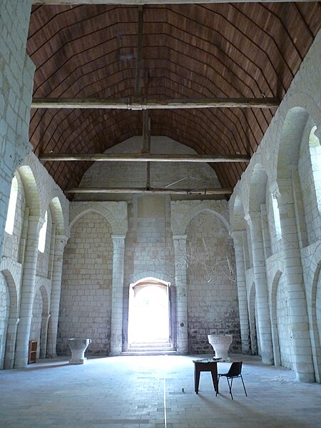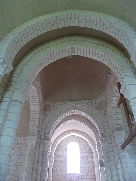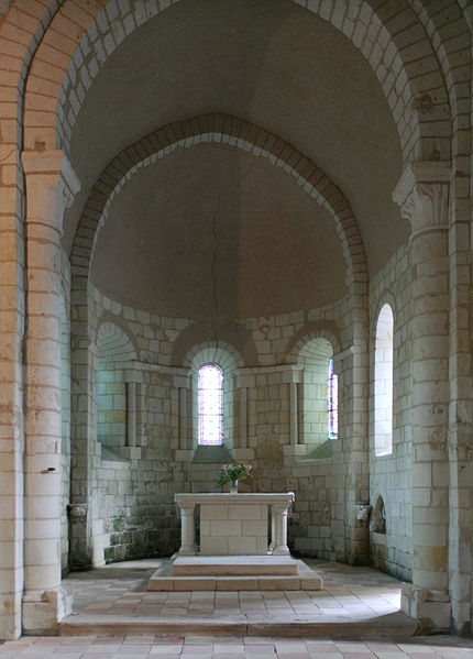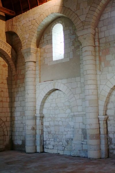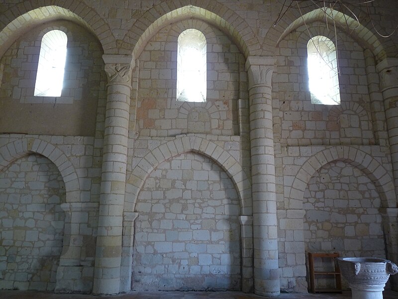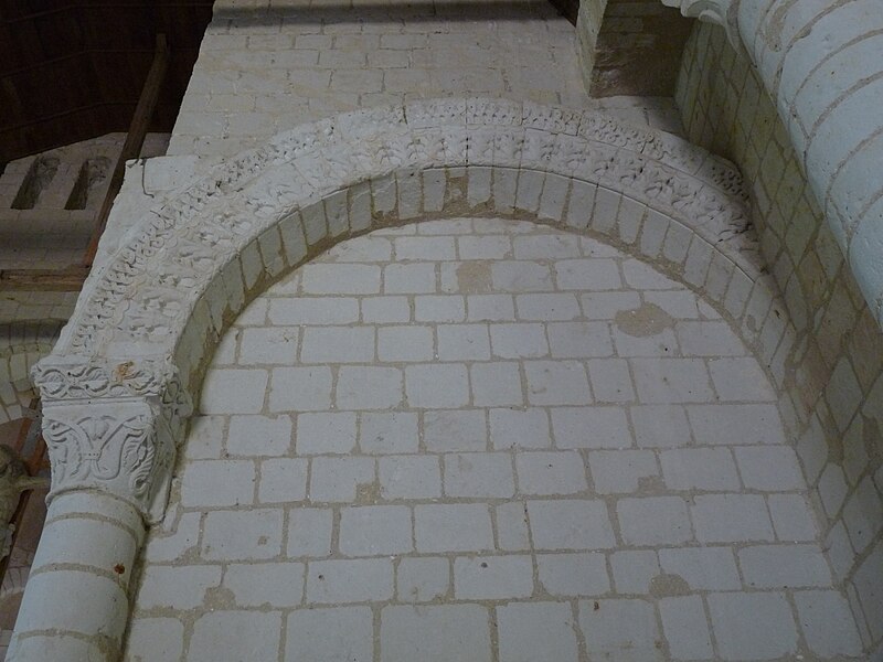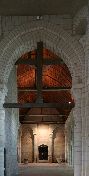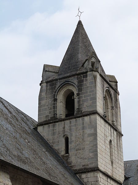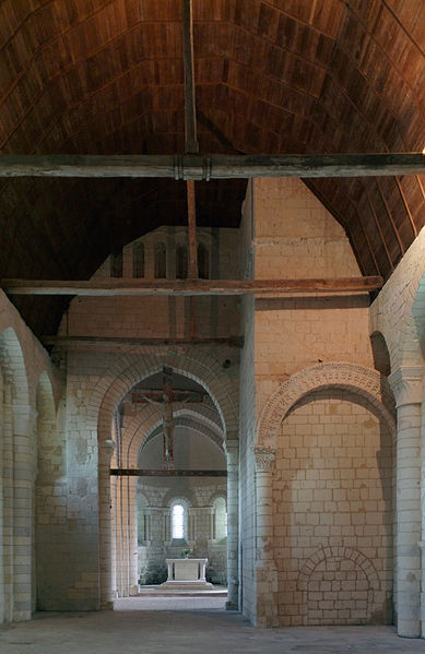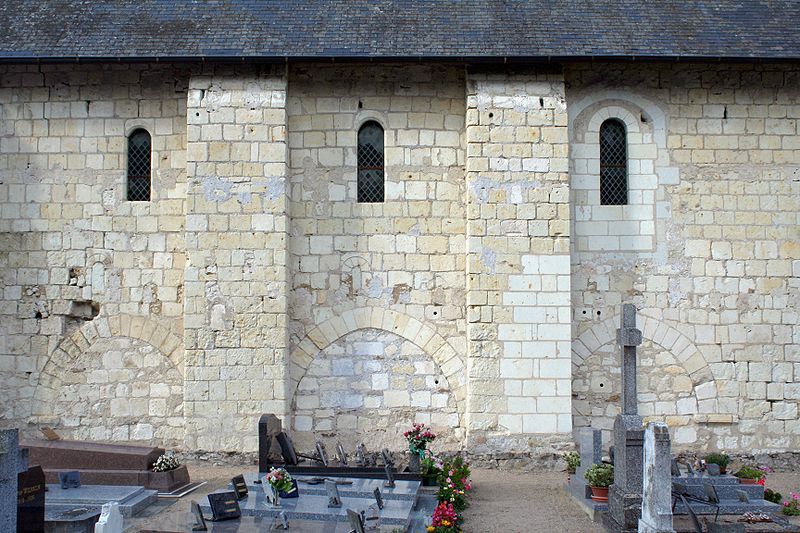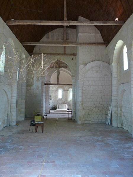 L'église Saint-Aubin de Trèves se trouve sur la commune de Chênehutte-Trèves-Cunault, dans le département de Maine-et-Loire. Le village, d'abord appelé Clementiniacus, appartient dès l'époque carolingienne à l'abbaye Saint-Aubin d'Angers. Les textes indiquent que l'église se situait en 1060 à l'intérieur du château, détruit en 1068 par Foulques le Réchin, qui transfère alors le marché et le port à Cunault et reprend ensuite les lieux en 1091 après avoir reconstruit le château. Avant 1101, le château est inféodé à Geoffroy Foulcrade, qui fait en 1106 un don de terrains à l'abbaye Saint-Aubin pour la construction d'un prieuré : c'est la borne la plus ancienne pour le début des travaux de l'église. Une plaque en ardoise clouée sur le pignon du chœur porte la date 1172, peut-être celle d'achèvement de l'édifice. L'église romane du XIIe siècle se dresse au pied du donjon ; un clocher est ajouté au XIIIe siècle et, au XVe siècle, les murs latéraux sont renforcés tandis que la nef reçoit une voûte en berceau en charpente. La paroisse de Trèves est supprimée en 1809 et rattachée à Cunault ; l'église, alors délaissée, est restaurée entre 1860 et 1865 par Monseigneur Amand-René Maupoint, évêque originaire de Chênehutte. Elle a été endommagée pendant la Seconde Guerre mondiale et a fait l'objet de réparations par la suite. L'édifice abrite le tombeau de Robert Le Maçon, qui avait acquis la baronnie de Trêves en 1416, fut chancelier de France sous Charles VII et protecteur de Jeanne d'Arc ; son épitaphe, gravée dans l'église, rappelle ses titres et porte une inscription mentionnant sa date de trépas. L'église est classée monument historique depuis 1862 ; le tabernacle, surmonté d'une flèche, bénéficie lui aussi d'une protection au titre des monuments historiques. À l'intérieur, l'espace dépouillé a conservé son caractère primitif : la nef unique est rythmée par de grandes arcades en cintre brisé reposant sur des colonnes. À la croisée du transept, une belle voûte sur trompes amorce une tour carrée coiffée d'une toiture en pavillon. La base du clocher, à droite de l'entrée, est percée d'un grand arc en plein cintre selon la manière poitevine qui atténue l'austérité du mur. On note un baptistère en porphyre orné de quatre masques en saillie, dont l'un représente un visage humain à barbe taillée à la romaine, et, près de la croisée, l'ancien tabernacle sous la forme d'une lanterne en pierre blanche de style flamboyant tardif. Au fond du transept droit se trouve le tombeau avec épitaphe et gisant de Robert Le Maçon. L'extérieur présente une façade sobre ornée de trois arcs entre deux contreforts d'angle ; sous l'arcade centrale, la porte en plein cintre est décorée de petites dents de scie. Les murs portent de larges arcades en cintre brisé, ouvertes au XIIIe siècle, qui semblent avoir donné accès à de vastes galeries latérales aujourd'hui détruites, et l'on retrouve les traces de petites fenêtres attribuées au XIe siècle, tandis que les baies visibles datent du XIXe siècle. Le clocher-tour, sobre et massif, est surmonté d'une flèche de tuffeau du XVe siècle cantonnée de quatre lanternons.