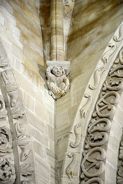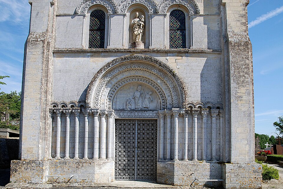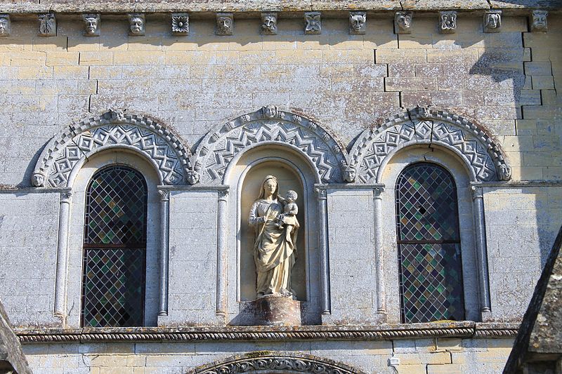 Le chevet présente des fenêtres dont les arcs sont sculptés de frettes crénelées ; Arcisse de Caumont signale que des baies semblables existaient dans la nef mais avaient été bouchées ou altérées. La nef se distingue par ses contreforts et une corniche ornée de modillons. La tour se termine en bâtière, caractéristique que Caumont attribuait à la seconde moitié du XVIe siècle. Plusieurs éléments de l'édifice s'inspirent d'autres monuments régionaux : le tympan rappelle celui de l'église de la Nativité-Notre-Dame de Beaumais, d'autres décors renvoient à l'abbaye Saint-Georges de Boscherville et à l'abbaye aux Hommes de Caen.