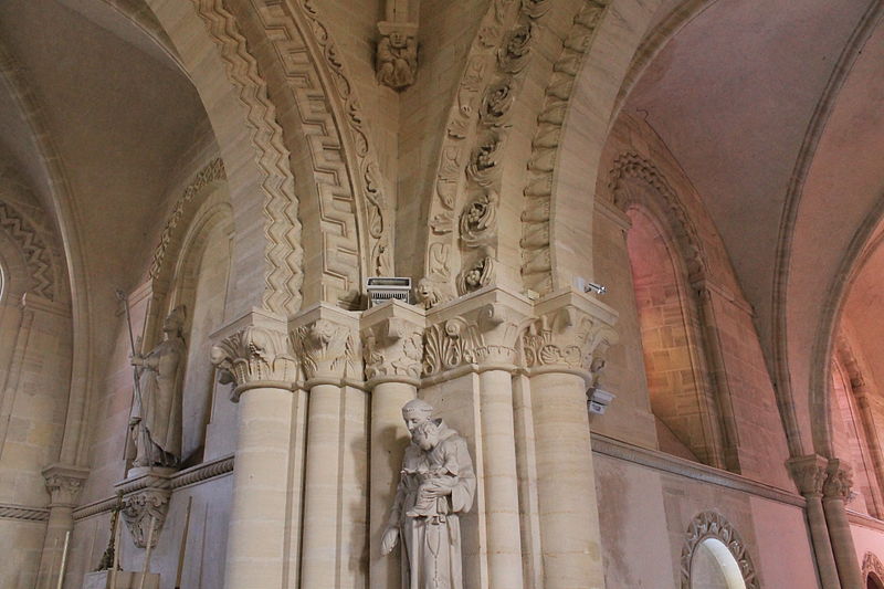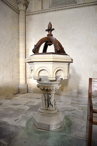 La restauration principale s'étendit de 1848 à 1854 et est inscrite sur le tympan de la tribune. Elle fut conduite sous l'impulsion du comte Henri de Toustain, avec une aide financière exceptionnelle de l'impératrice. Le comte et P. Palos, curé de la paroisse, assumèrent les fonctions d'architecte et d'entrepreneur, avec, semble-t-il, l'intervention d'Alphonse Delauney, architecte des Monuments historiques de l'arrondissement. La sculpture décorative fut réalisée sous la direction de Pierre Hotin, sculpteur à Bayeux.