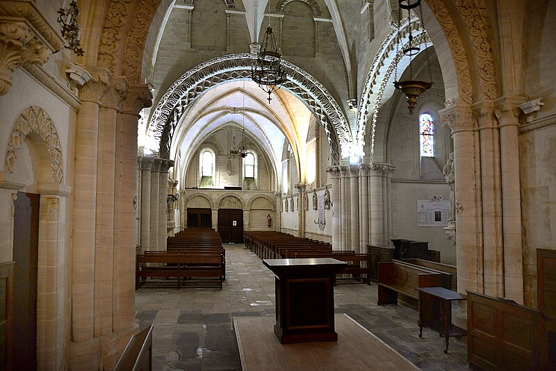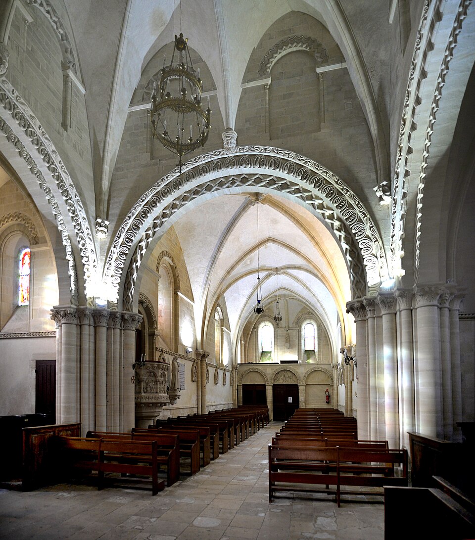 Les travaux comprirent la démolition de la chapelle seigneuriale, la reconstruction des voûtes du chœur et la réfection complète du décor intérieur, à l'exception de l'extérieur du chevet. La dernière travée de la nef fut démolie pour l'établissement d'un transept, la nef fut allongée d'une travée vers l'ouest et l'ensemble fut couvert de voûtes ; les baies furent refaites et une nouvelle façade élevée. Un devis daté du 20 mai 1850 par Delauney concerne l'un des bras du transept. Les portes et la croix du cimetière, copie de la croix romane de Grisy, sont probablement contemporaines de cette période.