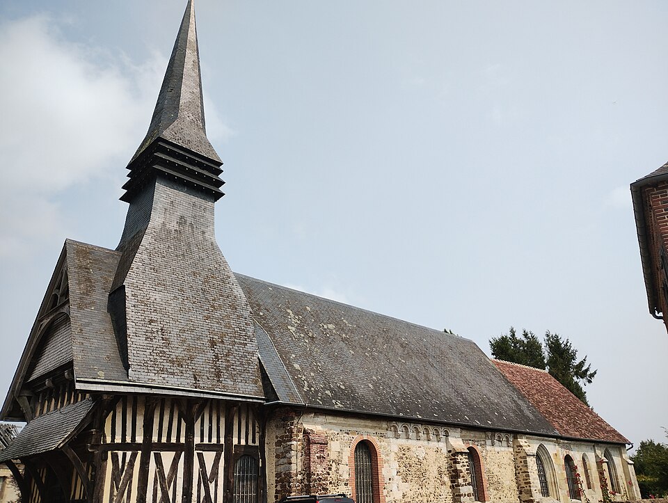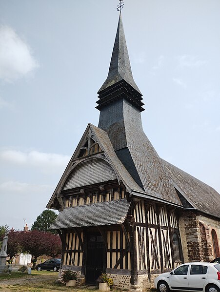 L'église Saint-Aubin, située dans le bourg de Saint-Aubin-de-Bonneval (Orne), présente une construction ancienne dont la partie centrale de la nef, ornée de modillons et d'arcatures romanes, remonte au XIIe ou au début du XIIIe siècle. Au début du XIIIe siècle, le droit de patronnage fut donné à l'abbaye de Saint-André-en-Gouffern, et la famille d'Aunou semble avoir été à l'origine de l'édifice. À la fin du XVe siècle, de grandes baies moulurées furent percées et un clocher-porche en pan de bois, portant les armes des Houllay de la Lobbraye, fut adossé au pignon occidental de la nef. Les deux travées orientales de la nef furent reprises au XVIe siècle. Au XVIIIe siècle ou au XIXe siècle, des baies cintrées plus larges, en briques et pierres, remplacèrent des ouvertures plus étroites, et au milieu du XVIIIe siècle de grandes baies furent ouvertes dans le chœur et la nef. Le XIXe siècle a vu d'importants aménagements intérieurs : démolition du mur pignon séparant la nef du porche devenu avant-nef, reconstruction de la voûte du chœur en plâtre, construction de la sacristie et réalisation d'un décor peint. Après des détériorations causées par la foudre en 1895, le clocher, la couverture et le mobilier ont fait l'objet de restaurations, puis le clocher fut refait en 1959 et l'élévation ouest restaurée au milieu du XXe siècle. L'édifice conserve un décor peint et du mobilier daté du XVIIe siècle, ainsi que la nef aux modillons remarquables et le clocher polygonal sur porche à pan de bois. L'église Saint-Aubin est inscrite au titre des monuments historiques depuis le 31 mai 1991.