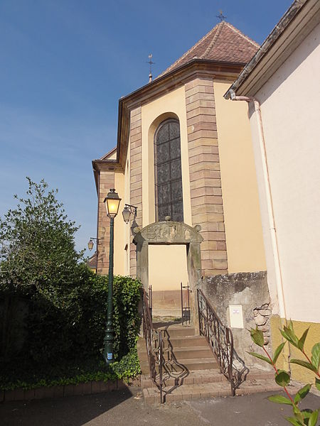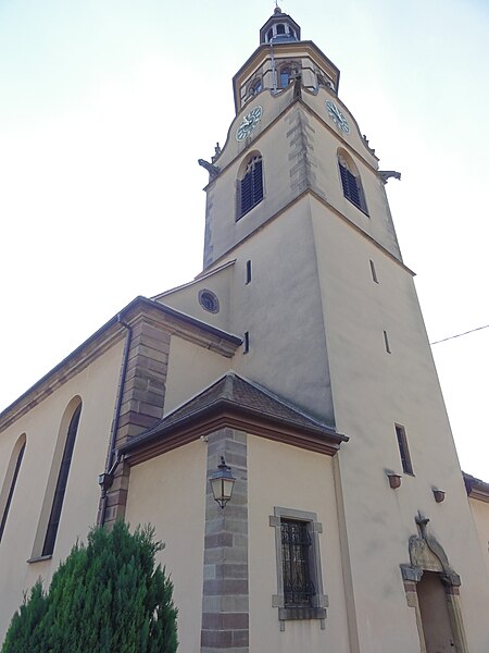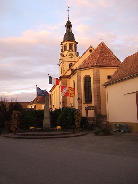 L'église catholique Saint-Barthélemy est située à Osthouse, dans le Bas-Rhin (Grand Est). L'édifice est inscrit au titre des monuments historiques depuis 1937. Initialement dédiée à saint Martin, elle fut ensuite placée sous le patronage de saint Barthélemy. La partie inférieure de la tour pourrait être romane ; le portail a été remanié en 1453 et, jusqu'au niveau du beffroi, la tour semble dater de cette même année. D'autres sources évoquent toutefois une construction de la tour aux XIIe–XIIIe siècles. Le couronnement du beffroi appartient aux XVIIe ou XVIIIe siècles et un dernier niveau a été ajouté après 1895 ; la tour est coiffée d'un casque prussien (Thurm‑Helm). La nef, le chœur et la sacristie ont été reconstruits en 1769 d'après un plan de 1765 par l'architecte Christiani de Barr ; les chapelles latérales ouest datent du XIXe ou du XXe siècle. La nef actuelle est la troisième de l'édifice. Les vitraux ont été réalisés par le verrier Ch. Lejail, de Metz. Le maître-autel, de style néo-rococo, est daté du XIXe ou du XXe siècle ; son tableau, peint par René Kuder, a été offert par le baron Louis de Sonnenberg. Dans le chœur sont conservés les porte-cierges qui rappellent les anciennes corporations de pêcheurs, d'agriculteurs et de journaliers, et une table ouvragée faisant office d'autel a été donnée par la baronne Eveline de Sonnenberg. Les tableaux du Chemin de Croix, peints par Carola Sorg, ont été offerts par le baron François (Frantz)-Antoine-Philippe-Henri Zorn de Bulach ; le tableau du Christ Rayonnant a été offert par l'évêque auxiliaire François Zorn de Bulach. Le premier orgue date de 1789 ; l'instrument actuel, construit par les ateliers Wetzel, a fait l'objet de modifications et réparations successives et a été démonté et restauré en 1992 par les Établissements Koenig. Le cimetière, surélevé par rapport à son environnement, pourrait avoir été fortifié ou servir à protéger le site des inondations de l'Ill. En 1576, Sébastien Zorn de Bulach introduisit la Réforme dans le village, mais après sa mort la communauté redevint catholique.