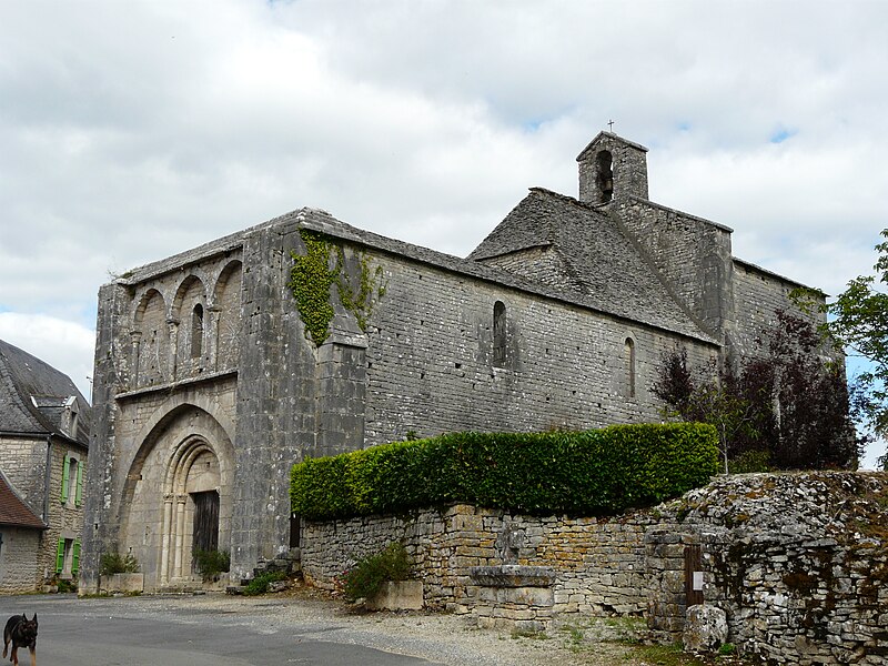 L'église Saint-Barthélemy de Bauzens, située dans le village de Bauzens (ou Beauzens) sur la commune d'Ajat, en Dordogne (Nouvelle-Aquitaine), est un édifice roman placé sous le patronage de saint Barthélemy et protégé au titre des monuments historiques (classée le 25 août 1909). Construite au XIIe siècle, elle est mentionnée dans une bulle du pape Calixte II comme rattachée à l'abbaye Saint-Pierre-ès-Liens de Tourtoirac. Orientée selon l'axe est-ouest, l'église est entièrement couverte de lauzes et se compose d'une nef, d'une travée élargie voûtée d'une coupole précédant le sanctuaire, et d'un sanctuaire légèrement surélevé à chevet plat. La façade occidentale s'ouvre sur un portail encadré sous un arc saillant, surmonté de trois arcatures dont les archivoltes reposent sur des colonnettes monolithes, deux d'entre elles portant des chapiteaux sculptés. Ce portail donne sur un enclos non voûté qui a servi de cimetière ; depuis cet enclos, l'accès à la nef se fait par un passage plus modeste. La nef et le chœur sont séparés par un arc triomphal surmonté d'un clocheton-mur à une seule baie, équipé d'une cloche. Le chœur, coiffé d'une coupole, comprend côté nord une chaire en pierre ; le sanctuaire, de dimensions réduites, abrite un retable en bois portant une peinture représentant Jésus sur la croix. L'édifice se termine par un chevet plat. À une quarantaine de mètres au sud-est se trouve un pigeonnier circulaire également recouvert de lauzes.