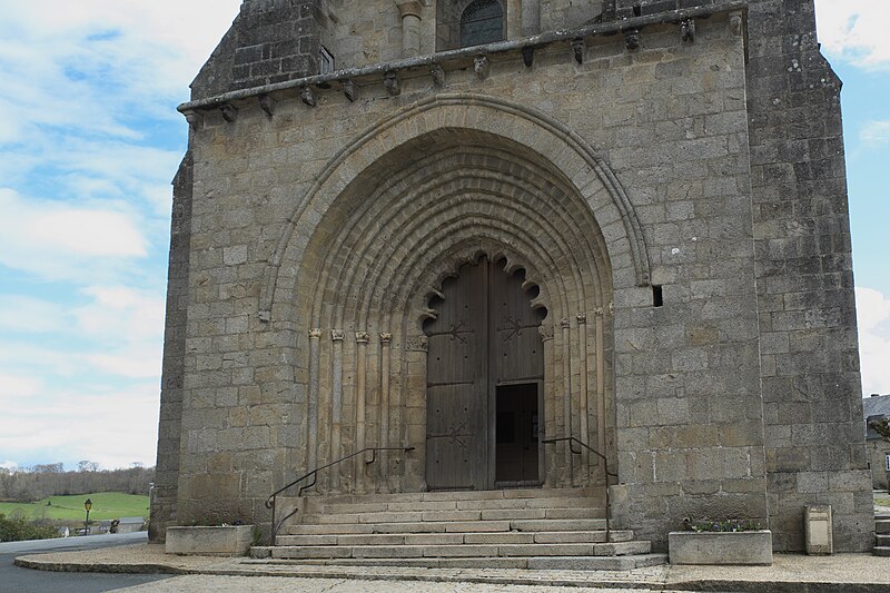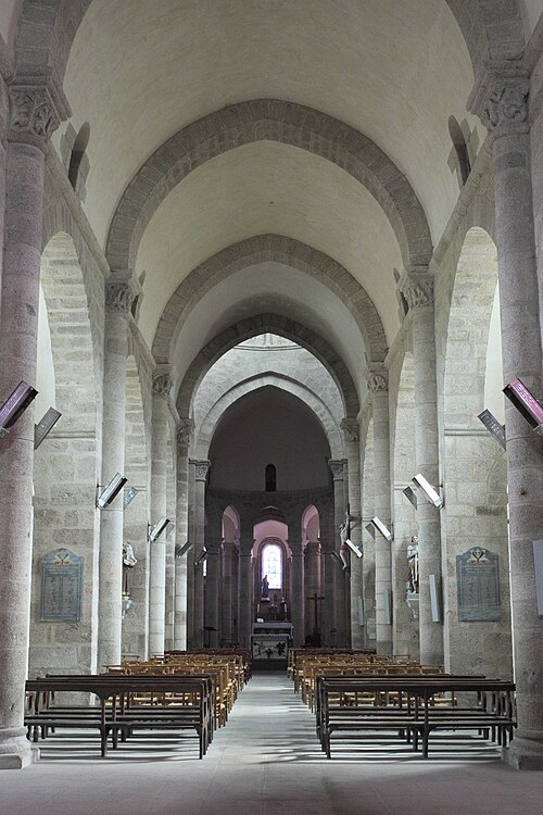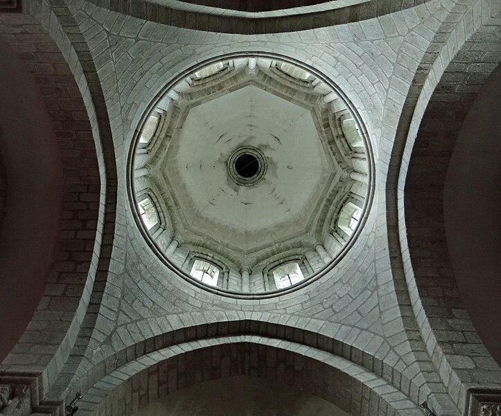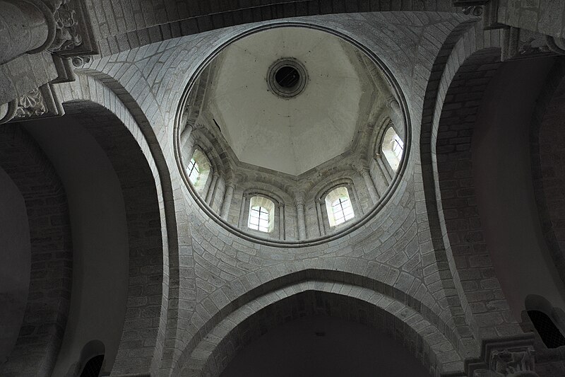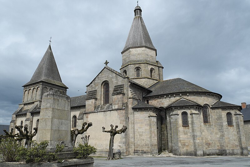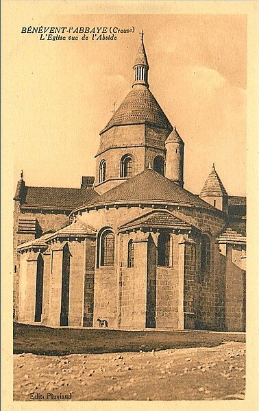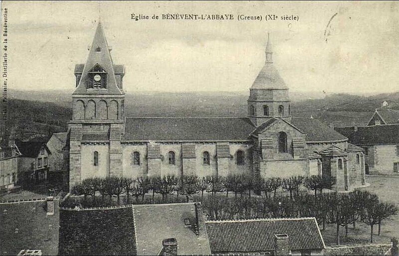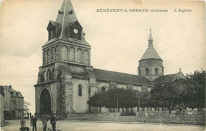 L'église Saint-Barthélemy se situe à Bénévent-l'Abbaye, dans la Creuse, sur la via Lemovicensis du chemin de Saint-Jacques-de-Compostelle. En 1028, un pèlerin offrit une partie des reliques de saint Barthélemy rapportées de Bénévent en Italie ; Dom Humbert, chanoine de Limoges, reçut ces reliques et les déposa dans l'église qu'il fit construire, consacrée cette même année. Le lieu, alors appelé Secondelas, prit alors le nom de Bénévent. La présence des reliques attira de nombreux pèlerins et ceux qui empruntaient la route de Compostelle. Une nouvelle église romane, plus vaste, fut édifiée au XIIe siècle en une seule campagne ; selon certaines sources, sa construction a pu s'étendre de 1120 à 1150. En 1458, l'église fut élevée au rang d'abbaye. Classée au titre des monuments historiques depuis 1862, elle a fait l'objet d'une restauration menée par l'architecte Paul Abadie, qui offrit à la fin des travaux un vitrail où il fit figurer ses armoiries au bas. Le porche comporte cinq voussures polylobées et évoque le style mozárabe. En parcourant les façades, on relève 145 modillons sculptés, souvent à têtes grimaçantes. L'intérieur présente une nef voûtée en berceau brisé couvrant quatre travées, flanquée de collatéraux très étroits et soutenue par d'imposants piliers. Trente-huit chapiteaux ornent l'édifice ; ceux du transept et du chœur sont sculptés de griffons, d'animaux grimaçants et de figures monstrueuses. La coupole à la croisée du transept masque l'emplacement de la tour octogonale. Le chevet s'ouvre par trois chapelles absidiales dédiées à sainte Anne, au Sacré-Cœur et à saint Joseph. Dans le croisillon nord se trouvent un gisant sous lequel reposent les restes de Dom Humbert, ainsi qu'une pierre tombale armoriée renfermant les restes de l'abbé de Naillac. Le croisillon sud abrite la chapelle Saint-Barthélemy, où un buste reliquaire du saint est placé sur l'autel, accompagné d'une statue en bois. Le portail, le chevet, plusieurs chapiteaux, le gisant et le vitrail du Christ portant les armoiries d'Abadie constituent des motifs fréquents de la documentation iconographique.