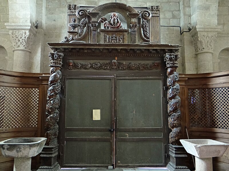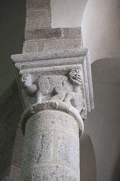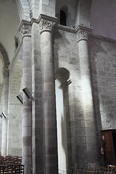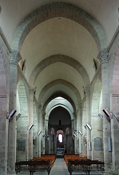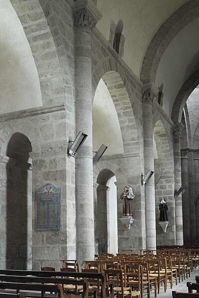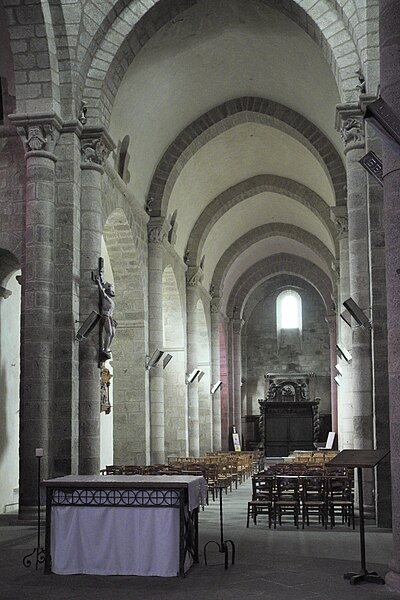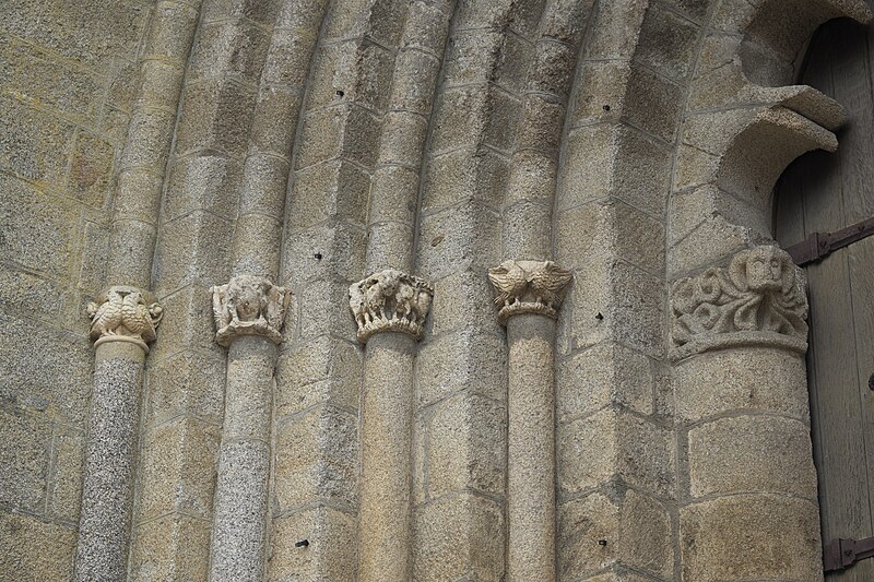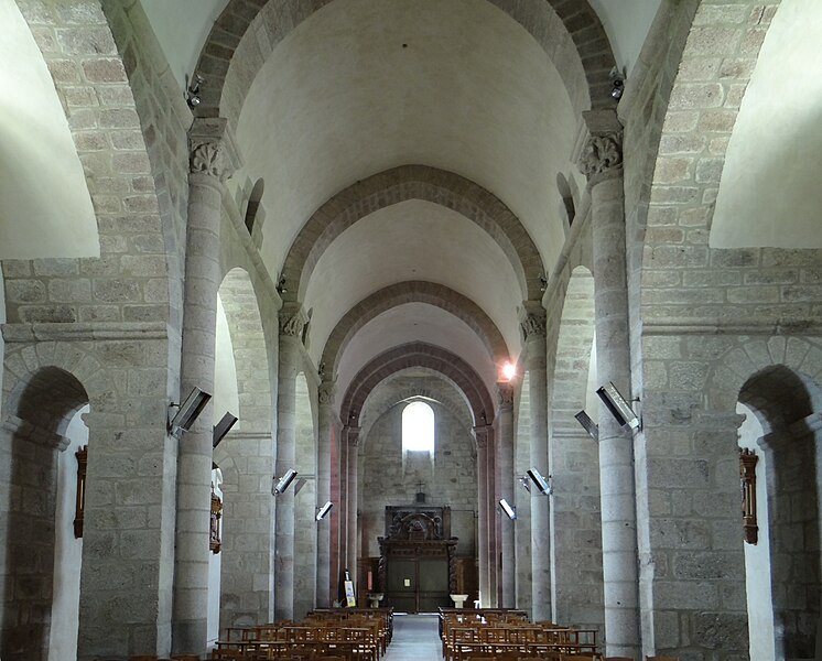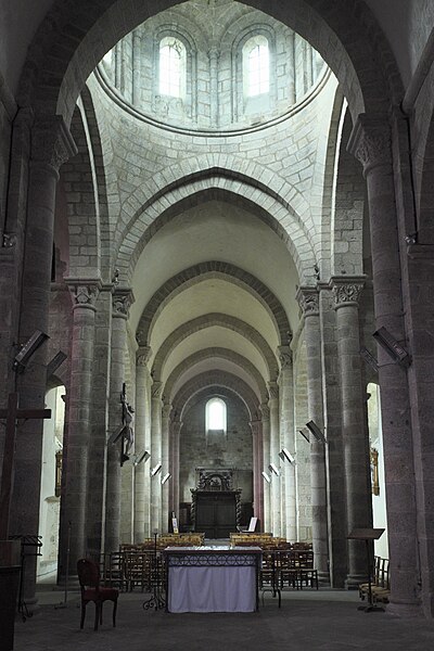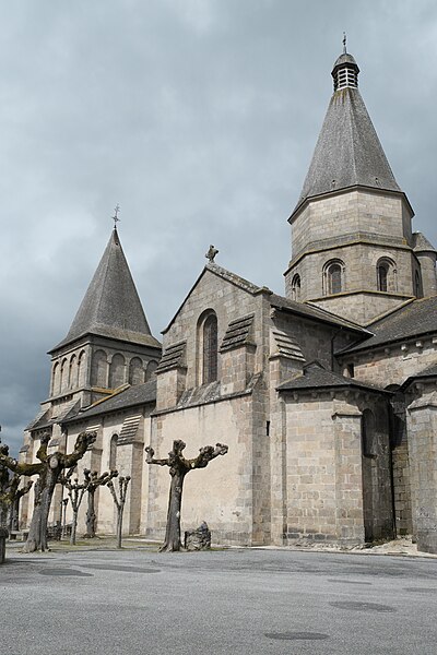 L'église Saint-Barthélemy se situe à Bénévent-l'Abbaye, dans la Creuse, sur la via Lemovicensis du chemin de Saint-Jacques-de-Compostelle. En 1028, un pèlerin offrit une partie des reliques de saint Barthélemy rapportées de Bénévent en Italie ; Dom Humbert, chanoine de Limoges, reçut ces reliques et les déposa dans l'église qu'il fit construire, consacrée cette même année. Le lieu, alors appelé Secondelas, prit alors le nom de Bénévent. La présence des reliques attira de nombreux pèlerins et ceux qui empruntaient la route de Compostelle. Une nouvelle église romane, plus vaste, fut édifiée au XIIe siècle en une seule campagne ; selon certaines sources, sa construction a pu s'étendre de 1120 à 1150. En 1458, l'église fut élevée au rang d'abbaye. Classée au titre des monuments historiques depuis 1862, elle a fait l'objet d'une restauration menée par l'architecte Paul Abadie, qui offrit à la fin des travaux un vitrail où il fit figurer ses armoiries au bas. Le porche comporte cinq voussures polylobées et évoque le style mozárabe. En parcourant les façades, on relève 145 modillons sculptés, souvent à têtes grimaçantes. L'intérieur présente une nef voûtée en berceau brisé couvrant quatre travées, flanquée de collatéraux très étroits et soutenue par d'imposants piliers. Trente-huit chapiteaux ornent l'édifice ; ceux du transept et du chœur sont sculptés de griffons, d'animaux grimaçants et de figures monstrueuses. La coupole à la croisée du transept masque l'emplacement de la tour octogonale. Le chevet s'ouvre par trois chapelles absidiales dédiées à sainte Anne, au Sacré-Cœur et à saint Joseph. Dans le croisillon nord se trouvent un gisant sous lequel reposent les restes de Dom Humbert, ainsi qu'une pierre tombale armoriée renfermant les restes de l'abbé de Naillac. Le croisillon sud abrite la chapelle Saint-Barthélemy, où un buste reliquaire du saint est placé sur l'autel, accompagné d'une statue en bois. Le portail, le chevet, plusieurs chapiteaux, le gisant et le vitrail du Christ portant les armoiries d'Abadie constituent des motifs fréquents de la documentation iconographique.
