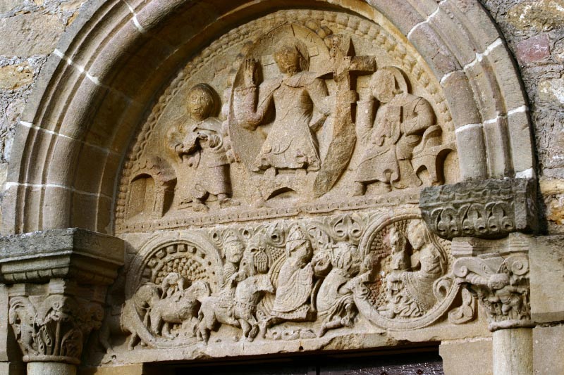 L'église Saint-Barthélemy de Fleury-la-Montagne, située dans la commune du même nom en Saône-et-Loire, est bâtie en calcaire doré du Brionnais. Elle est sans doute du XIIe siècle : le chœur, l'abside, une partie du clocher et le portail occidental sont romans, et elle aurait été commencée après une donation à l'abbaye de Cluny mentionnée en 1119. L'intérieur a été transformé à partir de 1783 et au cours de la première moitié du XIXe siècle. L'édifice bénéficie d'une inscription au titre des monuments historiques depuis le 29 octobre 1926. Le clocher, une tour carrée élevée sur la travée de chœur, comporte trois niveaux de baies, particularité pour une église à nef unique. La nef a été reconstruite et agrandie au XIXe siècle, et la nouvelle façade intègre le portail roman. Ce portail présente deux chapiteaux : celui du nord est orné de feuilles d'acanthe et de deux animaux musiciens, un bouc et un âne ; celui du sud, également sculpté de feuilles d'acanthe, montre un faune vêtu d'un pagne tenant dans la main gauche une fronde et dans la droite un bouclier. Le linteau représente l'Adoration des mages encadrée par deux roues à fond de damier, dont celle de droite abrite la Vierge et l'Enfant. Le tympan montre le Christ en majesté, dans sa mandorle, entre deux personnages assis que l'on identifie peut‑être à la Vierge Marie et à saint Jean. René Duvernoy note une nette différence de style entre le linteau et le tympan : les figures du linteau, aux plis multiples et concentriques, relèvent d'un art bourguignon, tandis que celles du tympan, plus calmes et lourdes, ont des draperies aux larges plis repassés rappelant Moissac, Beaulieu et les chapiteaux de Cluny ; le drapé de l'épaule gauche du personnage nimbé est particulièrement révélateur. Autre particularité, un cadran solaire est peint sur le mur oriental de la travée de chœur, au sud de l'abside. Des images montrent le chevet, le tympan, le cadran solaire, l'intérieur de l'église et l'un des chapiteaux, notamment l'âne musicien. Édifice consacré du diocèse d'Autun, l'église dépend de la paroisse Saint-Hugues-en-Brionnais-Bords-de-Loire (siège à Marcigny) ; elle en est affectataire au titre de la loi de 1905 et demeure un lieu de culte catholique.