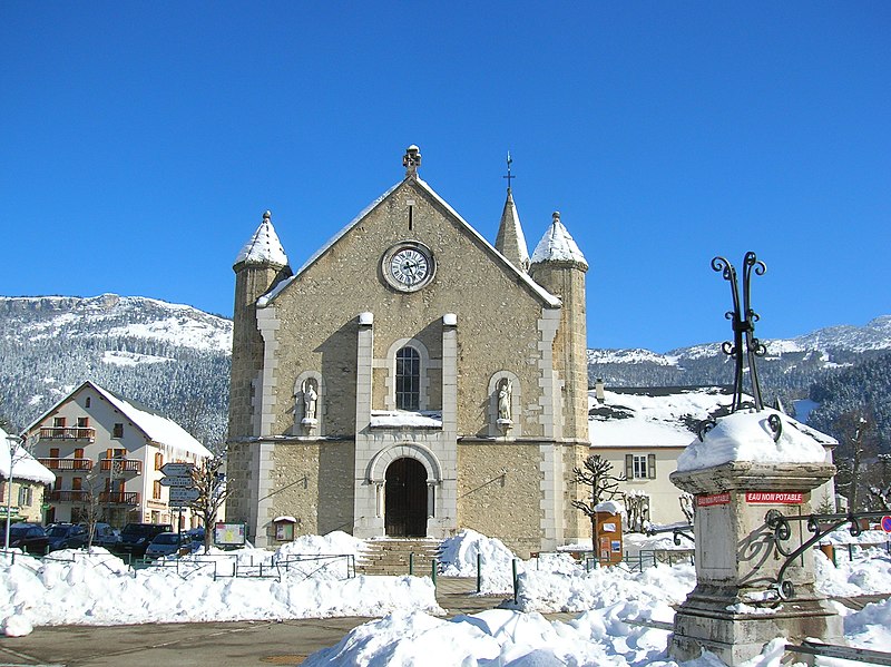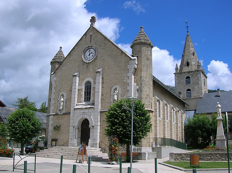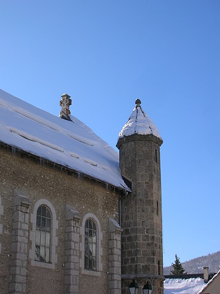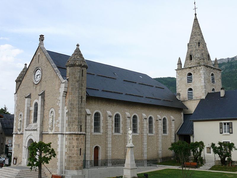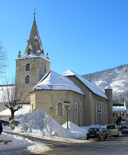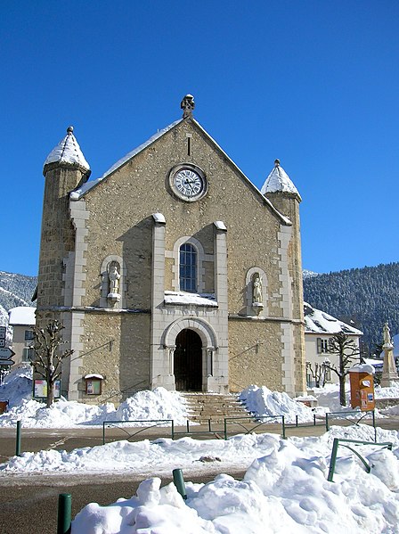 L'église Saint-Barthélemy de Lans-en-Vercors est une église catholique située à Lans-en-Vercors. Son clocher latéral, daté des XVIe–XVIIe siècles, est inscrit au titre des monuments historiques ; la nef, reconstruite en 1896, n'est inscrite que partiellement. Une église est attestée à Lans en 1080. À la fin du XIIe siècle, l'édifice primitif est remplacé par une église romane. En 1497, des documents mentionnent « Notre Dame de Lanceo » et signalent la présence de deux chapelles, dont une dédiée à saint Barthélemy, qui deviendra le patron de l'église. Au début du XVIIe siècle, l'abside est reconstruite et le clocher consolidé ; la nef subit une transformation importante à la fin du XIXe siècle. Les reliques du saint sont exposées lors de sa fête à la fin août. Le clocher, placé latéralement et adossé au chœur, présente une tour carrée à deux niveaux de baies, des pyramidons aux angles et une flèche en pierre formant une pyramide octogonale courte. Le chevet, d'inspiration gothique, est pentagonal et soutenu par des contreforts extérieurs ; l'abside est voûtée en ogive. Le mur nord du chœur conserve la paroi de la nef romane, tandis que le mur opposé a été renforcé intérieurement en ciment. Il subsiste une portion extérieure mutilée d'une porte romane, ancien second accès de la nef. La voûte du chœur, en croisées d'ogives, est de style néo-gothique ; ce vestige de nef romane, devenu chœur, s'ouvre sur la nef actuelle par un arc triomphal qui reçoit un maître-autel en marbre. La nef est entièrement néogothique : murs flanqués de contreforts, façade encadrée de deux tourelles et perron menant au porche surmonté d'une fenêtre voûtée similaire aux six fenêtres latérales. De part et d'autre de cette fenêtre se trouvent une niche et, au-dessus, une horloge provenant du clocher ; la façade est surmontée d'une croix grecque. Le toit très pentu est couvert d'ardoises et le mobilier est en chêne. Une des deux fenêtres de la sacristie, à arc brisé, est contemporaine du clocher. Les vitraux, réalisés par Jean-Baptiste Jandet, portent la dédicace des paroissiens. L'église conserve une cloche datée de 1610, inscrite « IESVS MARIA SANCTVS BARTOLOMEVS ORA PRO NOBIS [...] 1610 » ; elle est la plus ancienne des trois, sonne un do dièse et est classée au titre des monuments historiques. Le prieuré-presbytère attenant présente une tourelle déjà signalée au début du XVIIe siècle, un pigeonnier témoignant d'un privilège et un toit couvert d'ardoise depuis la fin du XIXe siècle. Dès 1080, les chanoines du prieuré de Saint-Martin-de-Miséré choisissaient un prieur désigné par l'évêque de Grenoble comme curé de Lans ; après la Révolution ces prieurs ont disparu et le curé est nommé directement par l'évêque. En 2000, la paroisse de Lans-en-Vercors a été intégrée à la paroisse de La Croix de Valchevrière, qui réunit huit clochers ; son curé réside à Villard-de-Lans, est nommé par l'évêque de Grenoble et célèbre chaque semaine une messe. Deux séquences du film Une hirondelle a fait le printemps de Christian Carion ont été tournées ici en 2001, avec Michel Serrault et Mathilde Seigner ; les Lantiers apparaissent nombreux dans la dernière séquence. La bibliographie principale citée est l'ouvrage d'Étienne et Annick Rémond, Lans-en-Vercors depuis l'an 1080 autour de son église et de son prieuré (2010).