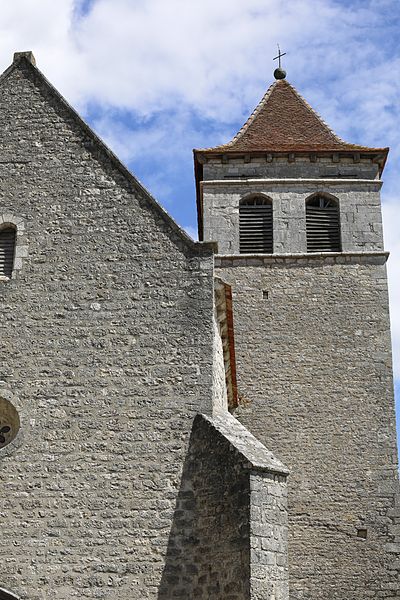 L'église Saint-Barthélemy de Montfaucon, dans le Lot, s'inscrit dans la bastide au plan régulier établie par les Anglais lors de l'occupation de la Guyenne. L'édifice a été élevé peu après la fondation de la bastide, à proximité de l'ancien fort qui occupait la partie nord du bourg. La construction s'est déroulée en deux campagnes : le chœur au début du XIVe siècle, puis la nef et les deux chapelles latérales formant le transept, achevés après la guerre de Cent Ans jusqu'à la fin du XVe siècle. L'église présente un plan en croix latine et un vaisseau principal composé d'une nef de trois travées séparées par des doubleaux. Les voûtes sont en croisées d'ogives reposant sur des culs-de-lampe ornés de têtes sculptées, et les clefs de voûte portent les armes d'Angleterre. La mouluration du portail d'entrée est attribuée à la fin du XIIIe siècle. Un escalier en vis, situé dans l'angle nord-ouest du bras de croix, permet d'accéder au-dessus des voûtes ; la chapelle nord est surmontée d'une salle de garde et la chapelle sud a été, peu après la construction, pourvue d'une ou plusieurs salles superposées. Un premier clocher devait se trouver au‑dessus de la chapelle de la Vierge, accessible par une tourelle rectangulaire, mais le clocher a ensuite été rebâti au‑dessus de la chapelle Saint‑Jacques (sud), daté comme postérieur au XVIIe siècle ; par ailleurs, un clocher a été élevé vers 1830 sur les anciennes salles de la chapelle sud. La toiture de l'église, signalée comme très dégradée à la fin du XVIIIe siècle, a fait l'objet de travaux au début du XIXe siècle, et la sacristie a été ajoutée au XIXe siècle contre le flanc nord de la nef. L'édifice, entièrement voûté et de style gothique, a été classé au titre des monuments historiques le 11 février 1936.