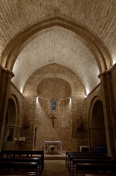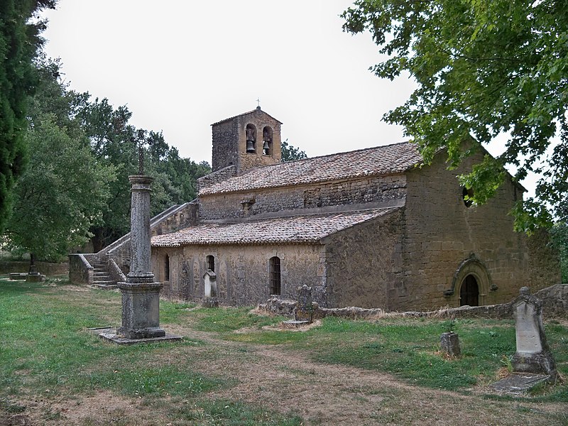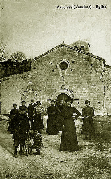 L'église paroissiale Saint-Barthélémy de Vaugines se situe au sud du Luberon, au débouché d'anciens itinéraires et en bordure du ruisseau de Laval. Un premier sanctuaire, dédié à Saint-Sauveur, fut élevé sur ce site au XIe siècle ; en subsistent le mur du chevet, l'abside centrale et l'absidiole sud. Le territoire de Vaugines apparaît dans les sources en 1004, et un document de 1099 confirme l'existence d'un établissement religieux lié à l'abbaye de Psalmody. Au XIIe siècle, une annexe rectangulaire fut ajoutée au sud, ouverte sur la troisième travée de la nef ; cette salle, voûtée en plein cintre, pourrait être la seule pièce conventuelle conservée. Avec la fondation du village au début du XIIIe siècle, la nef fut reconstruite : une nef de trois travées voûtées, plus large que l'ancienne, remplaça l'édifice primitif. L'église devint paroissiale sous le vocable de saint Pierre à cette époque, puis prit celui de saint Barthélémy à la fin du XVe siècle lors de la réoccupation du village. Les troubles des XIVe–XVe siècles entraînèrent un abandon du village et de l'église entre environ 1350 et 1450 ; le site fut réoccupé en 1478. Aux XVIIe et XVIIIe siècles, la population croissante conduisit à l'agrandissement de l'édifice par l'ouverture de chapelles latérales sur la nef, notamment les chapelles dédiées au Rosaire, à sainte Anne, à saint Sébastien et au Saint-Sacrement, ainsi qu'une chapelle nord voûtée en croisée d'ogives. En 1783 fut élevé un clocher-tour au-dessus de l'abside centrale ; l'église possédait déjà au moins une cloche datée de 1614. La construction d'une sacristie moderne contre le mur est de l'église entraîna la disparition de l'absidiole nord. L'ensemble a conservé quelques fragments de peintures murales à l'intérieur et l'ancien cimetière attenant, désormais désaffecté, abrite plusieurs pierres tombales du XIXe siècle. De l'édifice bénédictin primitif subsistent des éléments comparables à ceux d'autres monuments régionaux du XIe siècle, mais en l'absence de fouilles le plan exact de l'église originelle reste difficile à préciser. L'abside centrale semi-circulaire, inscrite dans un massif rectangulaire, est voûtée en cul-de-four et éclairée par une baie en plein cintre ; l'absidiole sud présente une baie axiale soigneusement appareillée. La nef du XIIIe siècle est couverte d'une voûte en berceau brisé maintenue par des doubleaux à double ressaut et des murs gouttereaux épaissis et confortés extérieurement. Une copie de l'autel tabulaire en marbre blanc était placée dans l'avant-chœur ; l'original, daté des VIe–VIIIe siècles, a été retrouvé dans une maison en ruines et est conservé au musée Calvet. L'église et l'ancien cimetière avec leur enclos sont classés au titre des monuments historiques depuis le 20 janvier 2000. Le site a servi de décor pour les films Jean de Florette et Manon des Sources de Claude Berri, tirés de Marcel Pagnol, notamment pour la célèbre scène du banc. Un musée lapidaire présente notamment l'autel de Vaugines et quelques éléments du mobilier.