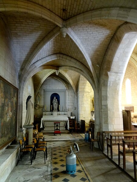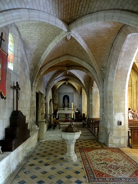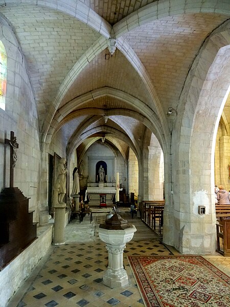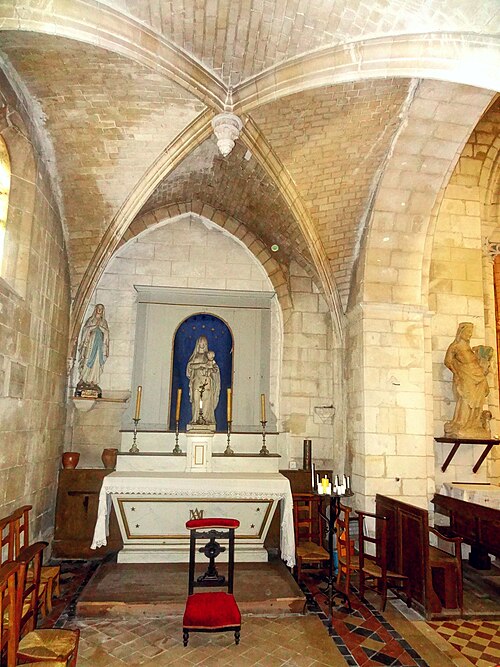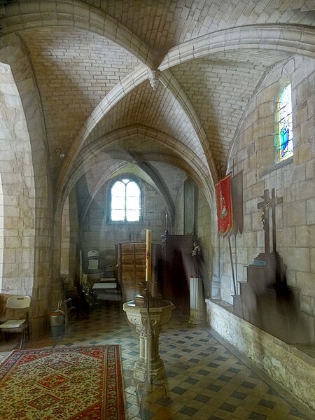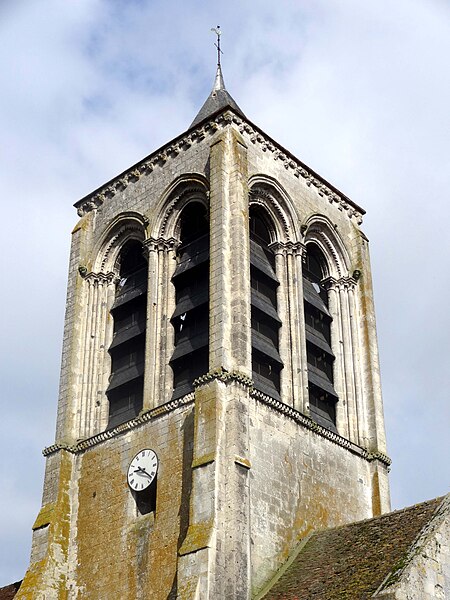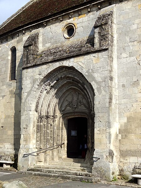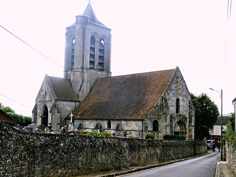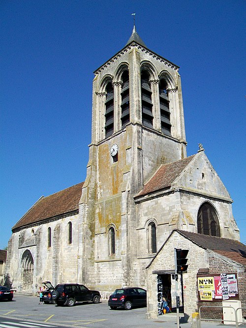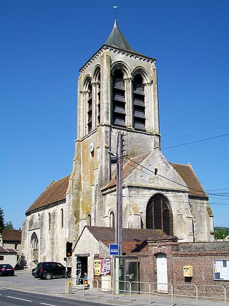 L'église Saint-Barthélemy de Villeneuve-sur-Verberie (Oise) est une paroisse catholique située rue des Flandres, en lisière est de la forêt d'Halatte et à proximité de la vallée de l'Oise, dans le Parc naturel régional Oise‑Pays de France. L'édifice relève de la première période gothique (années 1160‑1180) et conserve une forte influence romane, à l'exception des deux portails remarquables et de l'étage de beffroi du clocher. Les portails s'inspirent de la collégiale Saint‑Frambourg de Senlis et le clocher évoque la cathédrale de Senlis. L'ajout d'une chapelle au nord de la première travée du chœur au XIIIe siècle et de l'unique bas‑côté nord à la fin du XVe siècle ont rendu le plan dissymétrique. Le voûtement d'ogives de la nef, réalisé à la même époque, a profondément modifié l'aspect intérieur, tandis que le chœur a peu évolué depuis sa construction et demeure la partie la plus remarquable de l'église. Le chœur présente de belles voûtes, dont la deuxième comporte des ogives sculptées de fleurettes, et des chapiteaux d'une sculpture originale et très fouillée ; deux d'entre eux sont historiés et sont considérés comme exceptionnels pour le département. L'édifice, classé monument historique par arrêté du 9 mars 1921, est aujourd'hui rattaché à la paroisse Saint‑Rieul de Senlis ; les messes dominicales s'y tiennent le samedi précédant le quatrième dimanche du mois, un mois sur trois, à 18 h 30. L'église, bâtie en retrait et parallèle à la RD 932a, s'inscrit dans l'enclos du cimetière qui masque partiellement façade et chevet, si bien que seules les élévations latérales sont pleinement visibles. L'histoire du village est mal documentée ; la plus ancienne mention connue figure dans une lettre du temps de Philippe de Dreux, recopiée par le chanoine Afforty, et la paroisse apparaît liée au prieuré Saint‑Symphorien de Pont‑Sainte‑Maxence et à l'abbaye Saint‑Symphorien de Beauvais. La partie la plus ancienne de l'église est le chœur de deux travées dont les élévations extérieures et la décoration des fenêtres latérales sont d'allure romane, tandis que certains chapiteaux intérieurs évoquent la nef de la cathédrale de Senlis et sont datables par déduction des années 1170. La grande baie du chevet, d'allure flamboyante avec un remplage influencé par la Renaissance, appartient à une phase plus tardive. Des travaux importants, après la guerre de Cent Ans, ont conduit au percement du bas‑côté nord et au voûtement de la nef au XVe siècle ; une plaque de plomb retrouvée en 1793 atteste d'une nouvelle consécration célébrée le 22 mai 1510 marquant la fin de ces réparations, à l'exception de la baie du chevet et des clés de voûte. Le croisillon nord, ajouté vers la fin du XIIIe siècle, sert depuis longtemps de sacristie et communique faiblement avec les travées adjacentes en raison de la tourelle d'escalier logée dans l'angle. Sur le plan, l'église comprend une nef de quatre travées avec un unique bas‑côté au nord, un chœur de deux travées à chevet plat, et une chapelle désormais convertie en sacristie ; le clocher, implanté au‑dessus de la première travée du chœur, est coiffé d'un toit en pavillon aplati et l'ensemble est voûté d'ogives. L'architecture intérieure contraste entre une nef aux proportions trapues, résultat d'un édifice initialement non voûté et aux piliers engagés ovales, et un chœur plus élancé où l'arc triomphal, les faisceaux de colonnettes et les corbeilles sculptées témoignent d'un travail de grande qualité ; les scènes historiées — dont une Nativité et une Fuite en Égypte — sont d'une facture rare dans le département. À l'extérieur, les deux portails gothiques, l'un occidental et l'un méridional, présentent des archivoltes et des colonnettes décorées, tandis que le clocher carré à trois niveaux, dont l'étage de beffroi aux larges baies abat‑son est richement orné, domine la composition malgré une flèche en charpente jugée trop basse. Le mobilier comporte plusieurs éléments protégés au titre des monuments historiques : la Vierge à l'Enfant en pierre (classée), la statue de saint Louis et celle de saint Barthélemy (inscrites), la dalle funéraire d'Antoine Mouton (classée), des panneaux peints provenant d'un confessionnal et d'autres panneaux peints ainsi que le fond peint d'une armoire de sacristie (inscris), et sept chapiteaux du chœur classés au titre des objets.