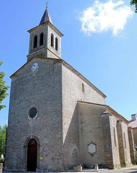 L'église du Montat, située dans le département du Lot sur la commune du Montat, a été classée au titre des monuments historiques en 1846. Selon les sources anciennes, elle aurait été fondée par Argambaud ou Ragambaud, doyen du chapitre de Cahors, qui la donna à l'évêché de Cahors en 950 ; en 1096 le pape confirma cette donation faite par l'évêque Géraud de Gourdon. L'architecture et le décor sculpté permettent de situer la construction principale à la fin du XIIe siècle. L'édifice semble étroitement lié au château voisin, dont les bâtiments s'étendent au sud, et il a pu jouer le rôle de donjon, sans que la documentation permette toutefois de préciser l'ancienneté exacte de ce lien ; en 1652, l'église et le château relevaient tous deux du chapitre de la cathédrale. Des aménagements défensifs ont été mis en place au Moyen Âge, avec des phases de transformation dont les plus récentes sont attribuées au XIVe siècle. Une première surélévation concerne la travée occidentale de la nef, puis la jonction de cette surélévation avec la tour de la travée d'avant‑chœur a été réalisée ultérieurement. La prise du Montat par les Anglais en 1356 aurait entraîné des destructions partielles selon certains auteurs, affirmation qui contraste avec l'état de conservation actuel de l'édifice. De même, l'obligation faite aux nouveaux tenanciers par le chapitre de Cahors de refaire la charpente en 1444 doit être considérée comme une simple réparation. Le vocable Saint-Pierre, attesté dans les documents anciens, a ensuite laissé place à Saint-Barthélemy, probablement avant le XVIIe siècle. Un projet d'agrandissement présenté en 1850 par l'architecte Joseph Pinochet ne fut pas réalisé à l'époque, mais ses grandes lignes furent reprises ultérieurement : deux bas‑côtés de deux travées furent ajoutés en ouvrant les murs de la nef et de la travée d'avant‑chœur, entraînant la destruction de l'escalier à vis qui donnait accès au clocher. Le portail sud fut muré et un nouveau portail ouvert dans la façade occidentale, désormais surmontée d'un petit clocher carré. Le décor peint de l'abside date du XIXe siècle.