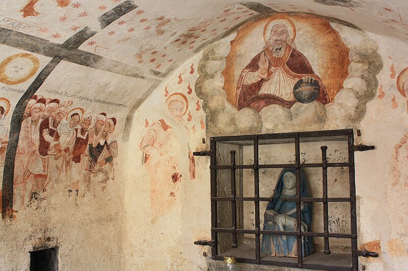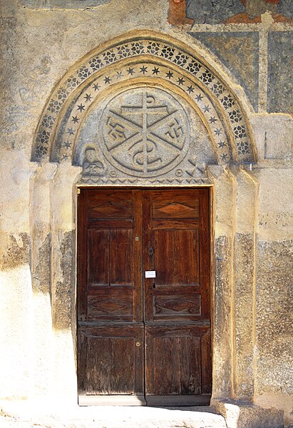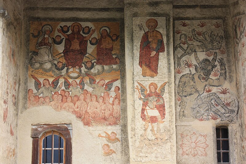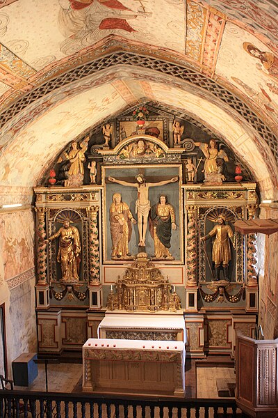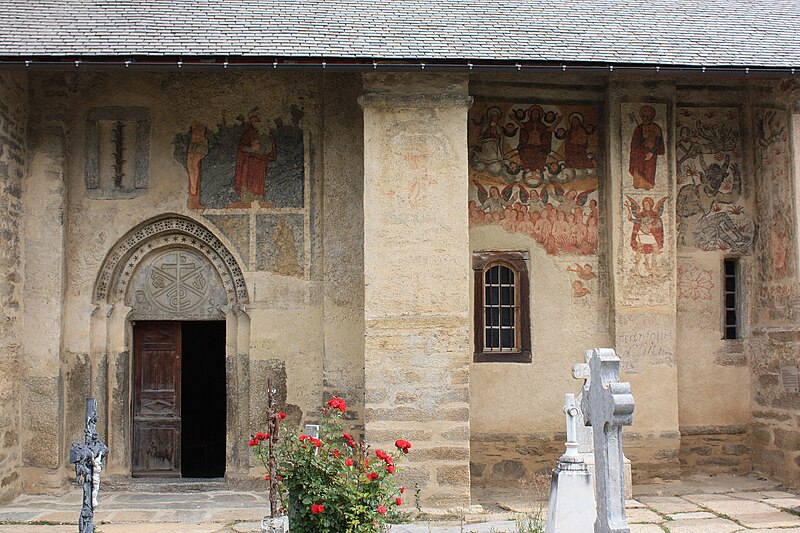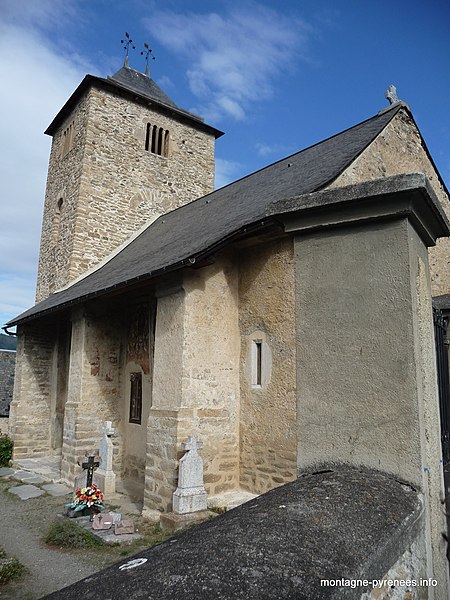 L'église Saint-Barthélemy de Mont, située sur la commune de Mont dans les Hautes-Pyrénées, est une église catholique classée au titre des monuments historiques en 1910. Elle remonte aux XIIe ou XIIIe siècles ; le style du portail sud suggère une datation au XIIIe siècle, et l'édifice a été largement remanié au XVIe siècle. La construction comprend une nef rectangulaire de deux travées, terminée par une abside à pans coupés et couverte d'une voûte en berceau, la nef ayant été à l'origine éclairée par deux meurtrières étroites. Adossée à la première travée, à l'ouest, se dresse une tour carrée du XVIIe siècle dont le beffroi est ajouré de quatre baies séparées par des colonnettes monolithes. La porte d'entrée, au sud, présente un tympan orné du Chrisme avec l'alpha et l'oméga ; en face s'ouvre une chapelle qui paraît postérieure à l'édifice. La voûte de l'église et celle de la chapelle reçurent, au milieu du XVIe siècle, un décor de fresques historiées peint par Melchior Rodrigis. Dans la nef, de part et d'autre de l'arceau de la tribune, sont représentés le prophète Isaïe et le Christ ; la première travée porte deux scènes de la Passion (la condamnation par Pilate et le portement de croix) et la seconde représente le Christ docteur entouré des évangélistes et de leurs attributs. La voûte de la chapelle illustre des épisodes de la vie de la Vierge et de saint Jean‑Baptiste ; l'abside avait également été peinte par le même artiste, mais cet ensemble est aujourd'hui masqué par un retable. Les parois extérieures du côté sud conservent aussi des peintures : au‑dessus du tympan, le Christ en croix entre la Vierge et saint Antoine d'un côté, et les évêques saints Blaise et Exupère de l'autre ; entre deux contreforts se déroule le Jugement dernier, la pesée des âmes figurant sur le contrefort gauche, et sur le contrefort droit trois dames en habit d'époque Henri II personnifiant la Foi, l'Espérance et la Charité. Près de la porte du cimetière subsiste un petit oratoire apparemment plus ancien que l'église, orné de peintures représentant le Père Éternel entre saint Pierre et saint Paul, des monogrammes du Christ et de la Vierge entourés du tétramorphe, et la légende de sainte Catherine d'Alexandrie. Au XVIe siècle, l'édifice connut des transformations notables, avec la construction de la chapelle nord, l'agrandissement du clocher‑mur primitif en clocher‑tour massif et d'importants travaux de décoration intérieure et extérieure. L'église fait partie des annexes de la cure de Saint‑Calix (Cazaux‑Fréchet‑Anéran‑Camors).