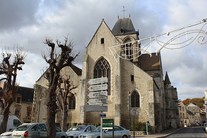 L'église Saint-Basile est une paroisse catholique dédiée à saint Basile de Césarée, située à Étampes dans l'Essonne. Elle se trouve en bordure de l'ancien tracé de la route nationale 20, près du centre-ville, face à l'hôtel dit de Diane de Poitiers et en contrebas du château ; insérée dans le quartier le plus riche de la ville, elle assurait le service paroissial tandis que la collégiale Notre-Dame-du-Fort, à quelque 300 mètres, remplissait la fonction seigneuriale. À l'origine, l'édifice a été construit autour de l'an 1020 à la demande de Robert II pour compléter la collégiale et recevoir les offices populaires. Il a fait l'objet d'une reconstruction importante au XIIe siècle, entre 1125 et 1145, dont subsistent notamment le portail ancien, les parties basses du transept et du chœur, la tour de croisée et l'assise basse de la nef. Devenu lieu paroissial en 1226, l'édifice n'a été consacré qu'en 1497 par Tristan de Salazar. Aux XVe et XVIe siècles, la nef, le transept et le chœur ont été rehaussés et les collatéraux et chapelles édifiés ou modifiés entre 1513 et 1559, date inscrite au chevet accompagnée de la devise FAXIT DEUS PERFICIAR. Transformée en salpêtrière pendant la Révolution, l'église a ensuite bénéficié d'importantes campagnes de restauration au XIXe siècle ; un orgue est installé en 1848, la chapelle de la Vierge ajoutée en 1849, la chapelle Saint-Joseph en 1863, et l'édifice est classé aux monuments historiques en 1862. Construite essentiellement en calcaire selon un plan allongé à trois vaisseaux et chevet plat, la partie basse repose sur de la pierre de taille tandis que la partie supérieure est en moellon de calcaire d'Étampes ; seuls les contreforts le long de la rue de la République sont en grès, une tourelle en brique donne accès au clocher et l'ensemble est couvert d'ardoise. La nef et les bas-côtés sont voûtés de croisées d'ogives quadripartites dont les clés portent les armes d'Anne de Bretagne. Sur le portail roman, des coquilles Saint-Jacques rappellent la situation de l'église sur la Via Turonensis. Parmi les éléments mobiliers, on relève un orgue de style romantique provenant d'une abbaye de Provins, divers hauts-reliefs représentant le chemin de croix, le baptême, la lapidation de saint Étienne et la Passion, des fonts baptismaux en marbre, un confessionnal, une chaire en chêne et le mobilier d'autel. Le clocher abrite trois cloches en bronze datées de 1829 et portant les noms de Louise, Marie et Caroline. Les boiseries du tambour de porte, datées du XVIIIe siècle, proviennent de l'ancien salon de musique du château d'Andonville, détruit au XIXe siècle. L'église conserve également des traces visibles de son évolution architecturale et liturgique, que l'on peut observer depuis la façade orientale et le clocher, dans la nef, au niveau de la porte latérale de style Renaissance et du portail roman composite. Jacques Guillaume Simoneau, né à Étampes le 14 janvier 1740, y a été baptisé le jour de sa naissance ; assassiné le 3 mars 1792, ses obsèques ont été célébrées en l'église le 4 mars 1792. Le naturaliste Étienne Geoffroy Saint-Hilaire, né le 15 avril 1772, y a été baptisé le 17 avril 1772.