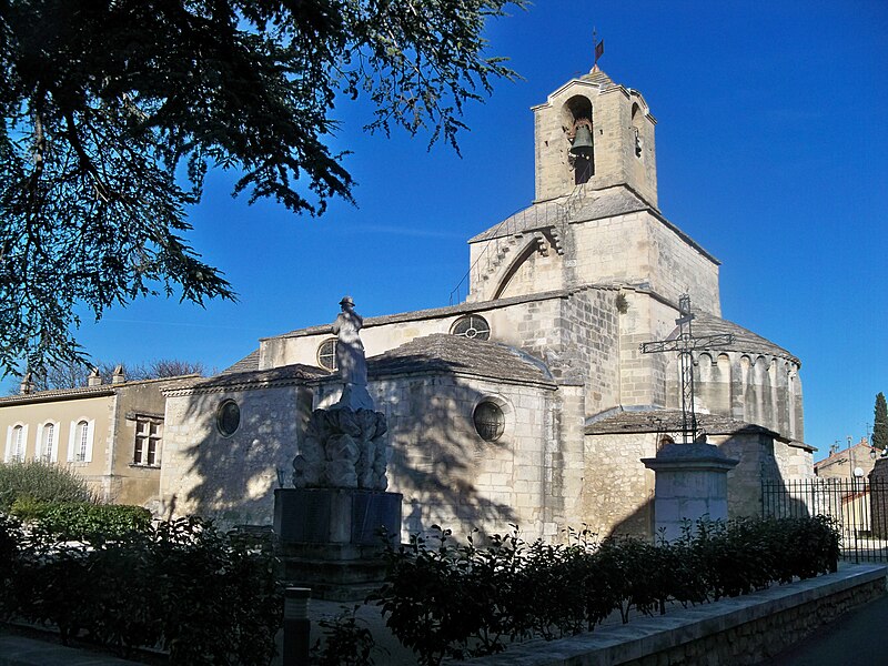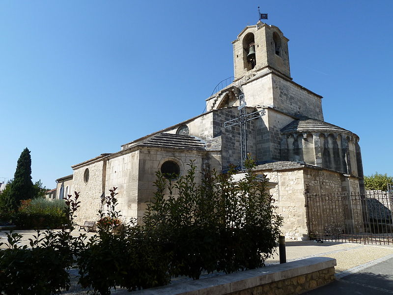 Dès l'Antiquité, le territoire de Noves est un lieu de passage et l'église actuelle se trouve probablement à l'emplacement d'un lieu de culte romain et d'une première chapelle chrétienne. Au Xe siècle, le village se regroupe au pied du château sur le rocher, tandis que l'église demeure en dehors de l'agglomération. Au XIVe siècle, de nouveaux remparts finissent par englober l'édifice. De l'église romane du XIIe siècle subsistent l'abside semi-circulaire, la croisée surmontée d'une coupole soutenant le clocher et une nef de trois travées voûtées en berceau brisé. Vers 1430, l'église est agrandie par l'ajout de deux collatéraux nord et sud, de deux travées chacun formant transept, et par l'élargissement de la porte d'entrée au sud. Au XVIIe siècle sont construits la tribune occidentale et une sacristie au sud-est du chevet. Au XVIIIe siècle, des chapelles nord et sud prolongent les croisillons du transept ; la chapelle Saint-Baudile conserve des boiseries enchâssant des toiles illustrant des épisodes de la vie du saint. L'édifice présente des caractéristiques du roman provençal, notamment une couverture en dalles de pierre et des voûtes en berceau brisé.