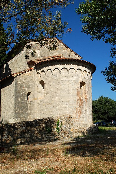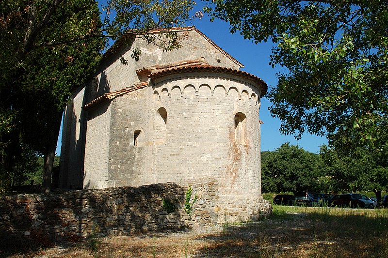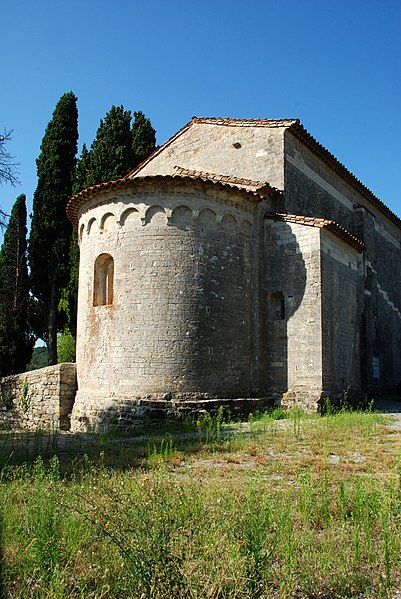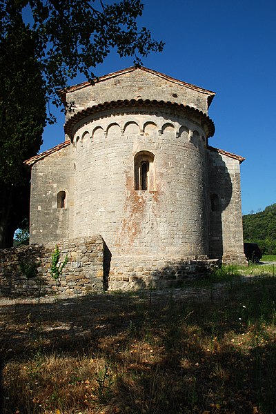L'église Saint‑Baudile de Tornac est une église romane située à Tornac (Gard, Occitanie). Elle se dresse à 700 m au sud‑ouest du village, au milieu de vignes et de cyprès, en vue des ruines de l'abbaye de Tornac. Un monastère dédié à saint Étienne existe à Tornac depuis le IXe siècle, mentionné sous les noms Tornagus (814) et Cellula Tornagus Sancti‑Stephani (817), puis Tornacus (922). L'édifice fut un prieuré bénédictin de fondation ancienne et l'édifice actuel a été reconstruit au XIIe siècle puis consacré par le pape Gélase II en 1118. Aux XIIe et XIIIe siècles, le monastère apparaît sous diverses formes dans les sources anciennes (Abbatia Tornacensis, Prior de Tornaco, Tornacense monasterium, Al monestier de Tornac, Monasterium de Tornaco). La première mention de la paroisse figure en 1345 comme Parrochia de Tornaco, puis en 1437 sous le nom de Parrochia Sancti Baudilii de Tornaco, ce qui montre que le patron de la paroisse était saint Baudile, évangélisateur de Nîmes et martyr du IIIe siècle. La communauté relevait de la viguerie d'Anduze et du diocèse de Nîmes, avant de dépendre du diocèse d'Alais. Au XVIe siècle, devenue prieuré conventuel de l'ordre de Cluny, elle prit le double vocable de Saint‑Étienne et Saint‑Sauveur (référence de 1579). L'église a subi de nombreuses vicissitudes : détruite au XVIe siècle, reconstruite au XVIIe siècle, puis brûlée en 1702. Classée au titre des monuments historiques depuis le 8 juillet 1911, elle a fait l'objet de travaux de restauration initiés en 1984 par une association de sauvegarde du patrimoine et conduits sous la direction des Monuments Historiques jusqu'en 1994. L'édifice présente un plan en croix latine avec une nef unique de deux travées, un chevet semi‑circulaire et de petites chapelles latérales faisant office de transept, lesquelles saillent extérieurement au niveau de la travée de chœur et du début de la nef. Il est bâti en pierre de taille assemblée en moyen appareil et couvert de tuiles, le chevet reposant sur un soubassement en moellon. La maçonnerie montre des traces d'opus monspeliensis (appareil alterné) au chevet et des réparations identifiables à la teinte blanche de certaines pierres. Le chevet semi‑circulaire est orné d'arcatures reposant sur des modillons géométriques et d'une frise de dents d'engrenage ; il est percé d'une fenêtre absidiale axiale à double ébrasement et d'une fenêtre sud à simple ébrasement, le côté nord étant aveugle. La façade occidentale, renforcée par deux puissants contreforts, s'ouvre par une porte en plein cintre à double ébrasement dont l'arc interne présente des claveaux alternés et un arc torique ; le pignon est percé d'une baie cintrée à simple ébrasement et surmonté d'un clocheton à une baie campanaire. L'abside, couverte d'une voûte en cul‑de‑four et précédée d'une courte travée de chœur, n'est percée que de deux fenêtres. La nef, voûtée en berceau légèrement brisé, est rythmée par de hauts pilastres reliés par de grands arcs de décharge, et des passages hauts et étroits situés près de la travée de chœur donnent accès aux chapelles latérales.