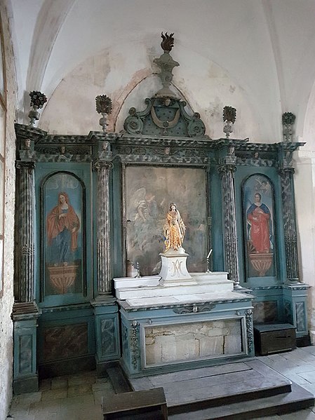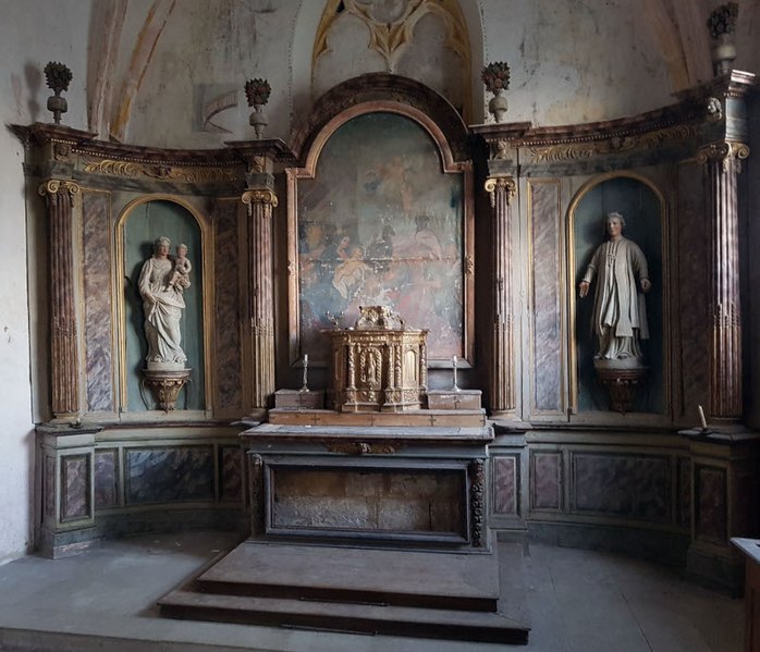 L'église Saint-Bénigne est une église catholique située à Domblain, dans le département de la Haute-Marne. L'édifice gothique actuel a été construit au XIIIe siècle, vraisemblablement en remplacement d'un bâtiment plus ancien, et accueillait les pèlerins empruntant le Chemin des étoiles, reliant le Mont Sainte-Odile à Saint-Renan entre les 48e et 49e parallèles. Vraisemblablement au XVe siècle, une importante campagne de travaux a remanié le chœur, élevé une tour donnant accès aux combles et ajouté une chapelle adossée au nord ; à cette époque, la plupart des baies furent élargies. Une sacristie a été aménagée au nord probablement au XVIIIe siècle et l'ensemble du mobilier, dont deux retables en bois polychrome (inventaire supplémentaire des monuments historiques, 2019), a été installé pendant cette période. L'édifice conserve de nombreuses peintures murales couvrant une chronologie allant de sa fondation au XVIIIe siècle. Fermée au public pour des raisons de sécurité en 1993, l'église a fait l'objet d'un programme de restauration générale lancé en 2010 sous l'impulsion des Amis de la restauration de l'église de Domblain. Le 6 juillet 2012, le clocher et une partie des couvertures ont été détruits par un incendie, peu avant le début de la première campagne de travaux qui s'acheva en 2014. Une seconde campagne de travaux a été menée en 2020. L'édifice conserve notamment le retable du chœur et le retable de la chapelle, et une photographie montre l'église vers 1990.