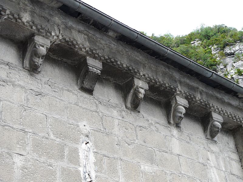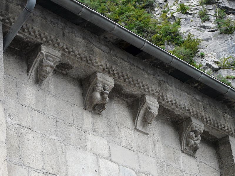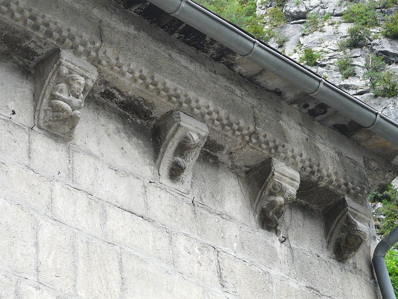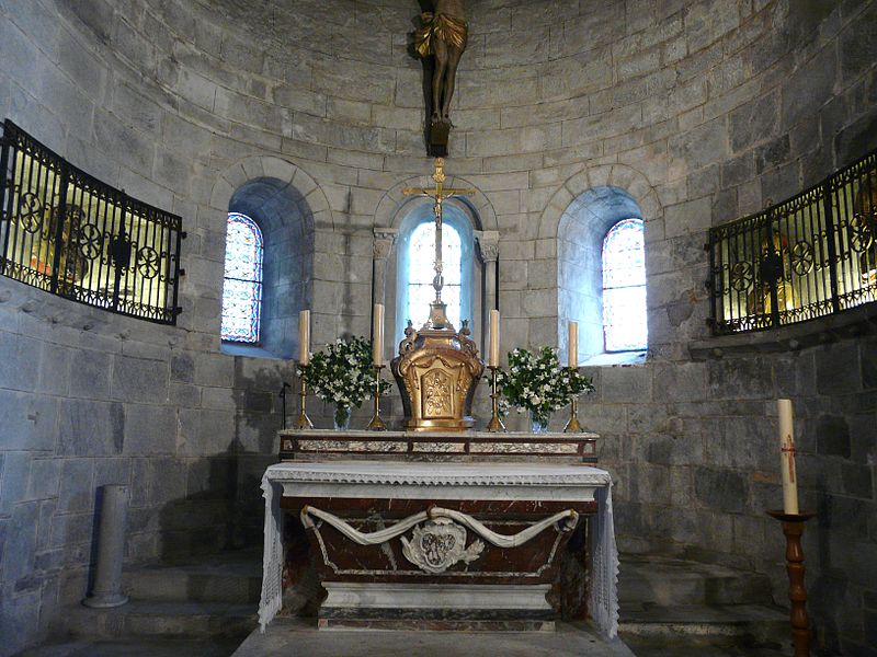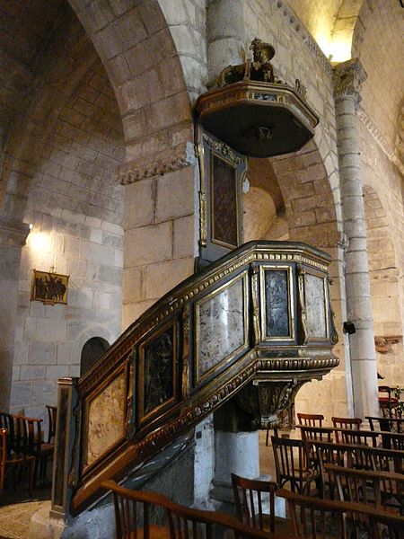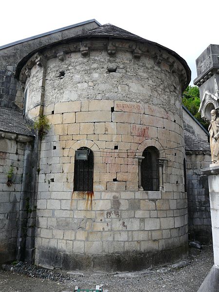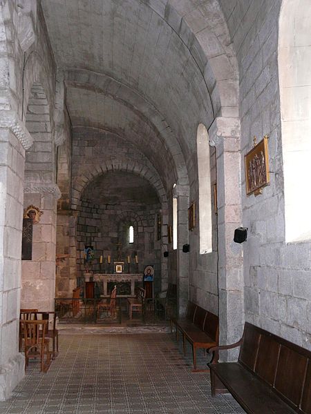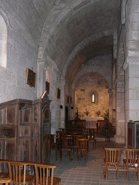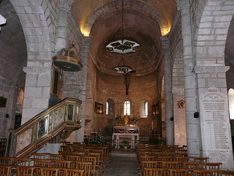 Un monastère bénédictin y a été fondé au VIIIe siècle ; il fut donné au prieuré de Lézat en 1003. L'église actuelle a été édifiée au XIIe siècle, après 1132. Au XIVe siècle, le monastère se désagrège et l'édifice ne sert plus que de paroisse. De plan tréflé, l'édifice s'ouvre au sud par un porche roman historié représentant le Christ en majesté entouré du Tétramorphe. Le clocher-pignon comporte deux arcades. À l'intérieur, l'abside et les deux absidioles sont voûtées en cul-de-four. Tailloirs, chapiteaux, bases de colonnes et piliers portent un décor roman caractéristique. Vers 1880, une restauration a entraîné la démolition de l'ancienne sacristie et la construction d'une nouvelle sacristie.