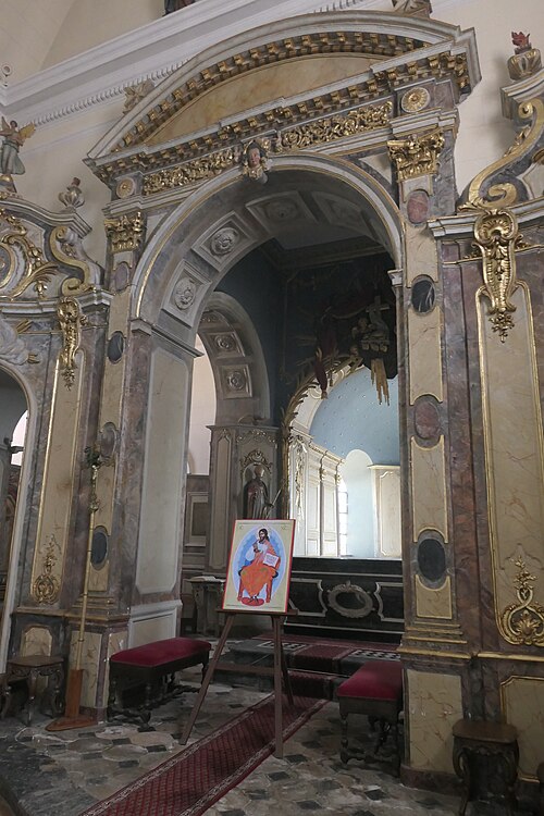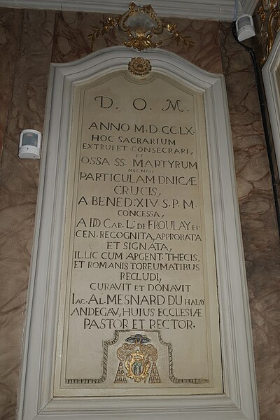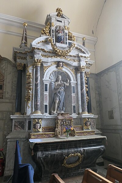 L'église paroissiale Saint-Blaise, de culte catholique, se situe dans le bourg de Bonchamp-lès-Laval, dans le département de la Mayenne. Le chevet remonte à la fin du XIe siècle ; l'édifice, d'abord dédié à la Vierge selon le cartulaire du Ronceray, porte aujourd'hui le vocable de Saint-Blaise. La nef a été allongée à plusieurs reprises, au XIIe siècle puis au début du XVIIIe siècle à la demande du prêtre Ambroise Bidault. Le chœur, le transept, l'abside, les absidioles orientées et la base du clocher conservent leur aspect roman. La chapelle sud de la nef a été édifiée pour le prêtre Gervais Mauclerc vers 1731. Le décor intérieur, de tradition XVIIe et XVIIIe siècles, a été réalisé pour le prêtre Alexandre Menard du Hallay entre 1756 et 1771. Des remaniements des baies ont été effectués en 1880. Inscrite aux monuments historiques depuis 1994, l'église conserve plusieurs éléments remarquables : le retable de la Vierge (1639), une épitaphe du XVIIIe siècle, le retable du maître-autel construit vers 1760 et une chaire en fer forgé réalisée en 1768 par le maître serrurier Jean-Baptiste-René Lafosse.