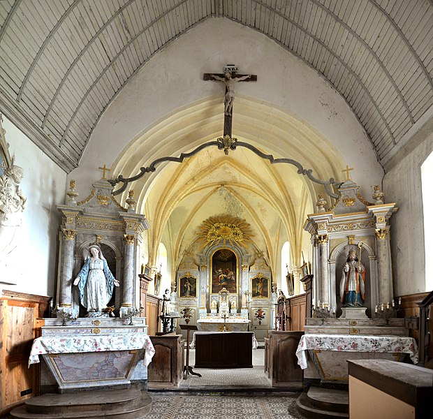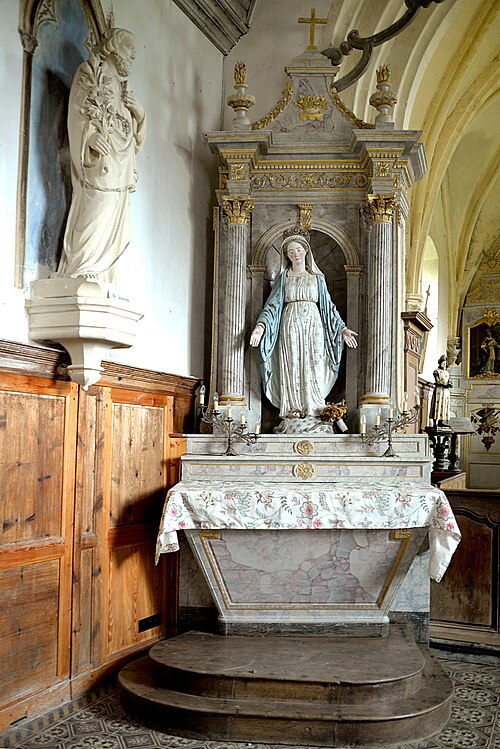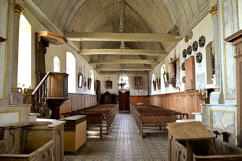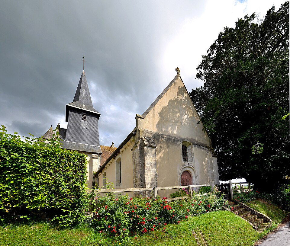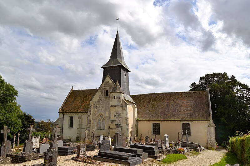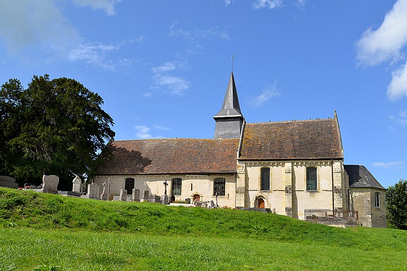 L'église Saint‑Blaise de Douville‑en‑Auge (Calvados) est un édifice ecclésiastique aux états de construction divers. Sa nef romane remonte au XIIe siècle, tandis que le chœur date du début du XIIIe siècle. Le clocher, formant une tour massive flanquée d'un contrefort à l'un de ses angles, est daté du XVIe siècle et est surmonté d'une pyramide en ardoise ; il comporte aussi une tourelle d'escalier. Les fenêtres de la nef ont été percées au XVIIIe siècle et une sacristie a été installée à l'époque moderne. Le chœur, couvert d'une voûte d'ogives dont les arcs retombent sur des colonnettes, présente un chevet droit et des murs latéraux soutenus par des contreforts ; le côté nord conserve une porte ogivale du XIIIe siècle. L'ensemble est orné de beaux modillons à figures grimaçantes. Un important mobilier des XVIIe et XVIIIe siècles, notamment un maître‑retable, complète l'édifice, représentatif des constructions rurales de la région. Le chœur de l'édifice est inscrit au titre des monuments historiques depuis le 16 octobre 2000.
