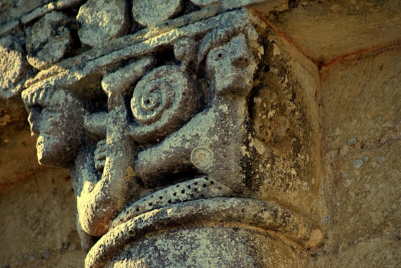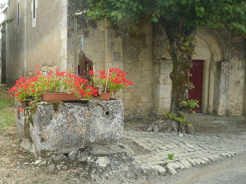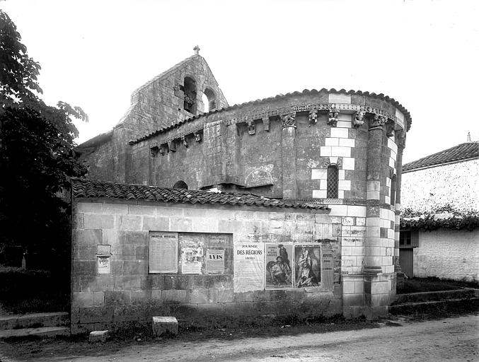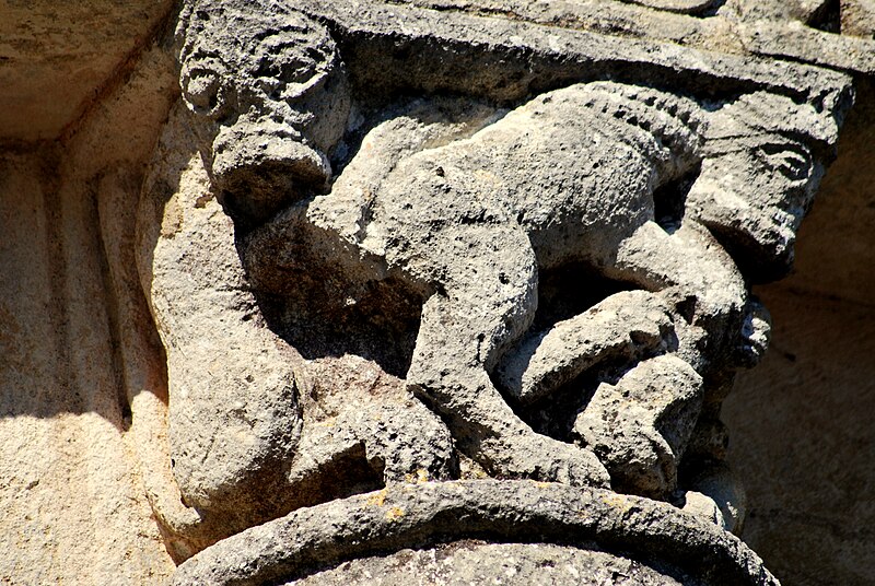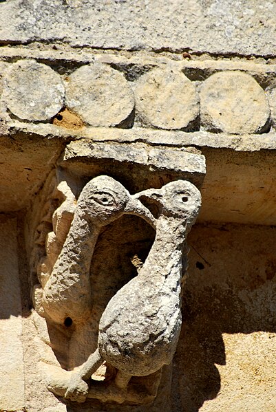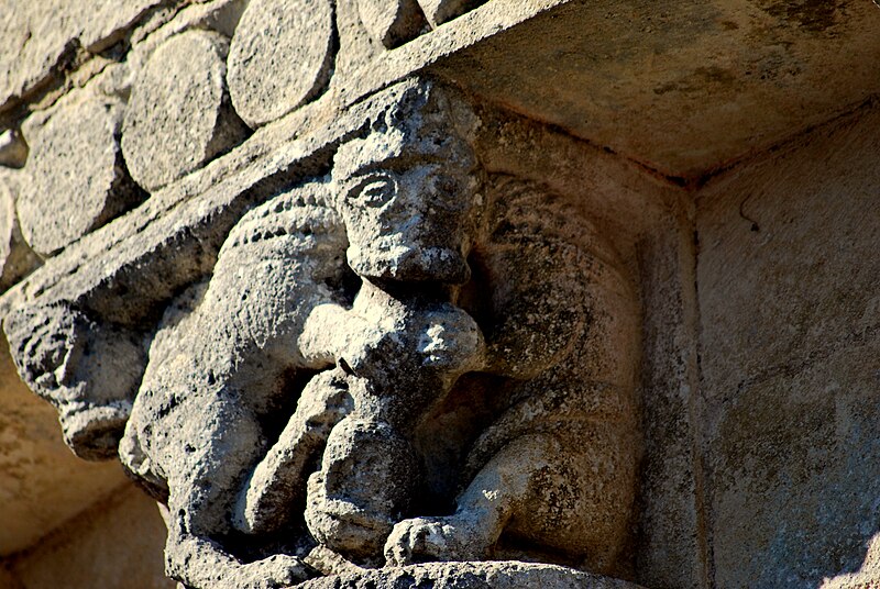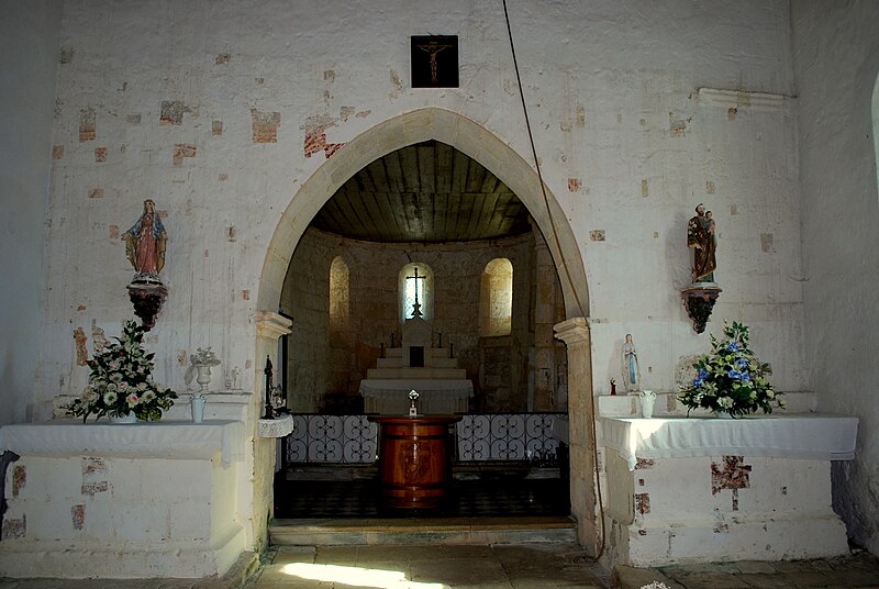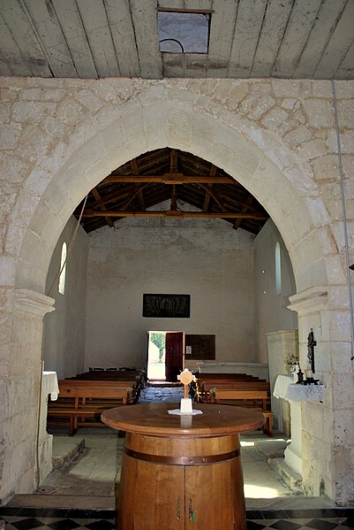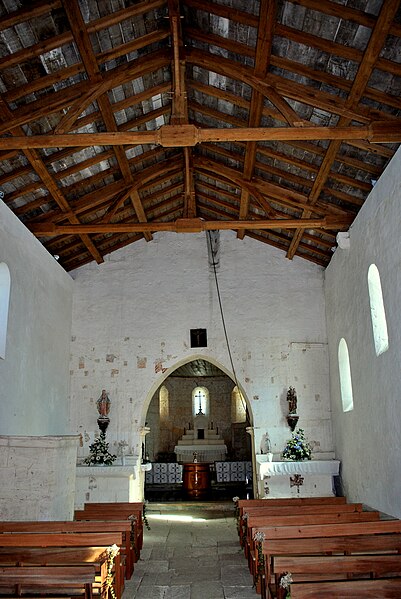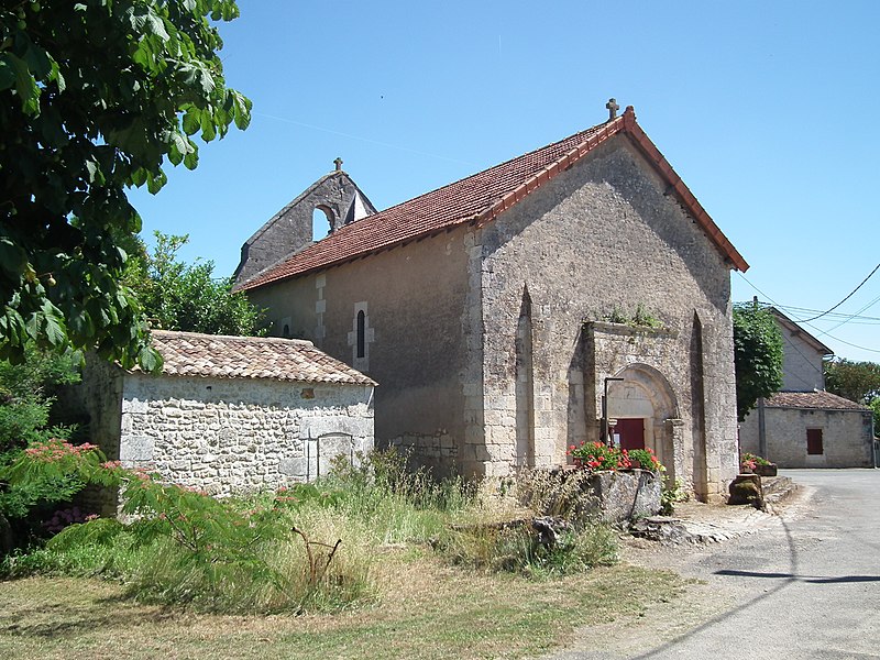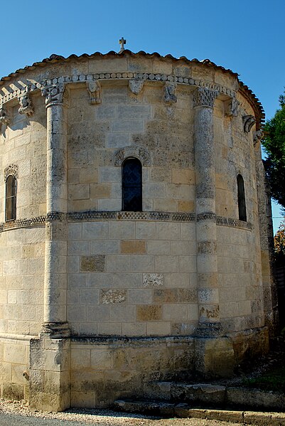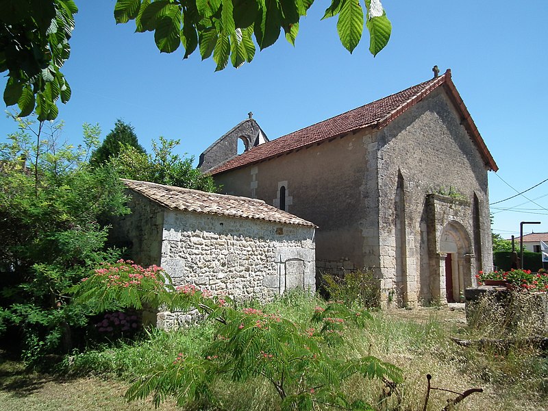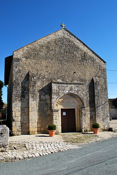 L'église Saint‑Blaise est une église catholique implantée à Givrezac, en Charente‑Maritime. Elle présente un plan simple : une nef unique se prolongeant vers l'est par un sanctuaire en hémicycle coiffé d'une demi‑coupole. La nef, aux murs nus, est couverte d'une charpente ouverte ; un « banc des pauvres » court à la base des murs. Le sanctuaire, également couvert d'une charpente, est éclairé par cinq fenêtres et dépourvu d'ornements. À l'entrée du chœur, côté droit, se dresse une colonne romane dont le chapiteau est sculpté d'entrelacs. La façade occidentale, sobre, s'ouvre au rez‑de‑chaussée sur un petit portail antérieur au XIIe siècle : deux voussures en plein cintre reposent sur de courts piliers et deux colonnettes. Vers le milieu de la toiture s'élève un pignon campanile à deux baies. La cloche, en bronze, porte l'inscription « DONNE PAR LES PAROISSIENS DE GIVREZAC 1784 TURNAUX M'A FAITE. BORDEAUX », est datée de 1784 et a été classée comme objet en 1911 ; ses dimensions figurent h = 46 ; la = 49. Les murs de la nef sont percés d'étroites fenêtres romanes aux cintres taillés dans un seul bloc de pierre. La façade absidale est rythmée en travées ; le texte évoque neuf travées, tandis que le chevet est par ailleurs décrit en sept pans, dont deux pour le chœur et cinq pour la partie semi‑circulaire. Les trois baies romanes de l'abside, en plein cintre, présentent des décors géométriques ; les deux baies du chœur sont sans décor. Sur les pans sud, sud‑est et est, un large bandeau damier coupe partiellement la surface et trois colonnes engagées encadrent ces zones. La corniche de l'abside, bordée d'un rang de disques accolés, s'appuie sur les colonnes et accueille une suite de quinze modillons figurés. Toute la sculpture figurée romane est concentrée sur cette corniche, accompagnée de trois chapiteaux sculptés. Le premier chapiteau montre un lion bicorporé qui semble entraîner un homme par les pieds ; sur la petite face, un second lion pose ses pattes sur la croupe du premier. Le deuxième chapiteau rassemble deux créatures androcéphales : l'une rappelle à la fois des figures de sirènes et des attitudes exhibitionnistes, l'autre a un corps de serpent qui se déroule sur l'astragale et tient la jambe de l'autre personnage. Le troisième chapiteau est décoré de feuillages simples. Les modillons, dont le style rapproche la sculpture de celle des églises voisines de Champagnolles et de Saint‑Quantin‑de‑Rançanne, datent vraisemblablement de la fin du XIe ou du début du XIIe siècle et pourraient être l'œuvre du même atelier. La série comprend des motifs variés — chouettes, oiseaux, musiciens, personnages en tunique, hommes nus, figures ithyphalliques, joueurs d'instruments, têtes animales stylisées, un cheval, deux poissons, ainsi que des éléments géométriques comme un point de diamant et des cylindres — et nombre d'entre eux évoquent la luxure ou des transgressions morales. Parmi ces modillons se retrouvent des scènes explicites : des oiseaux qui se bécotent, des oiseaux picorant un personnage allongé, une femme et un homme exhibitionnistes, ainsi qu'une représentation d'homme mangeant une hostie circulaire interprétée comme un sacrilège eucharistique. Sur un contrefort du mur sud de la nef se situe le cadran canonial dit « cadran A » ; des traces de trois autres cadrans existent sur le mur de la nef. Ces cadrans solaires primitifs servaient aux clercs pour repérer les heures des actes liturgiques ; plusieurs cadrans peuvent coexister en raison de l'ombrage provoqué par la végétation ou après des badigeons qui masquaient les anciens repères. L'église est placée sous le patronage de saint Blaise. La façade occidentale et la nef datent du Moyen Âge, antérieurement au Xe siècle selon le texte, tandis que le chœur et l'abside sont attribués au XIe ou au début du XIIe siècle. L'église Saint‑Blaise est classée au titre des monuments historiques depuis 1910.
