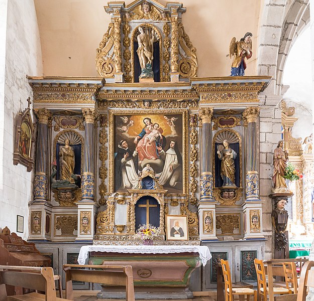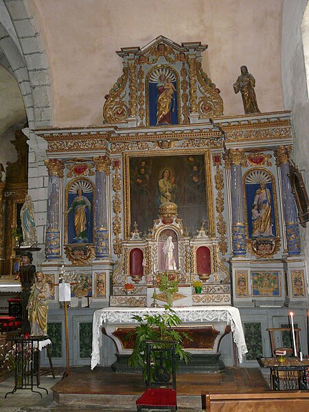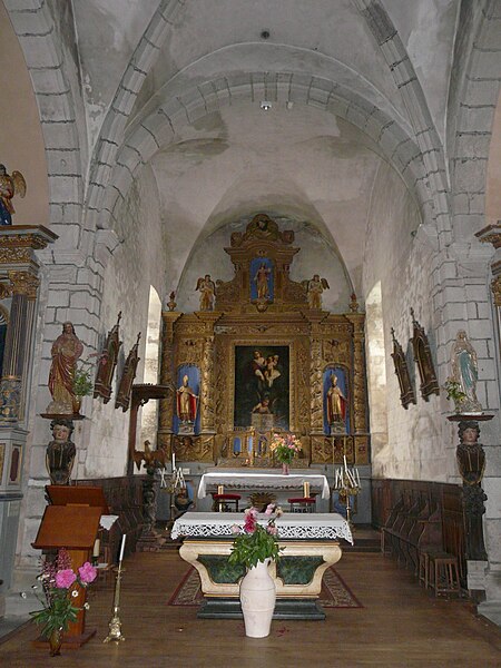 Le mobilier comporte plusieurs objets classés au titre des monuments historiques : trois retables du XVIIIe siècle venant de l'abbaye de Féniers — le retable du maître-autel, le retable du Rosaire dans le collatéral nord et le retable de l'Immaculée Conception dans le collatéral sud — un aigle-lutrin en bois du XVIIIe siècle, deux cloches en bronze datées de 1705 et 1713, ainsi que deux ensembles de calices et patènes en argent repoussé, l'un datant d'environ 1745 et l'autre des années 1760.
