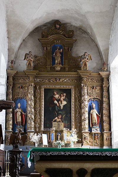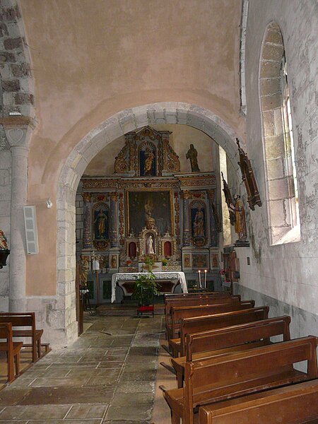 Implantée au carrefour des routes départementales 36 et 679, l'église conserve des vestiges romans de l'édifice primitif. Elle trouve son origine au XIIe siècle et a été reconstruite au XVe siècle, ne conservant de cette période romane que quelques éléments dans la nef.