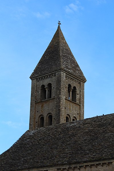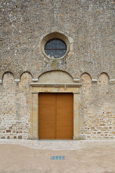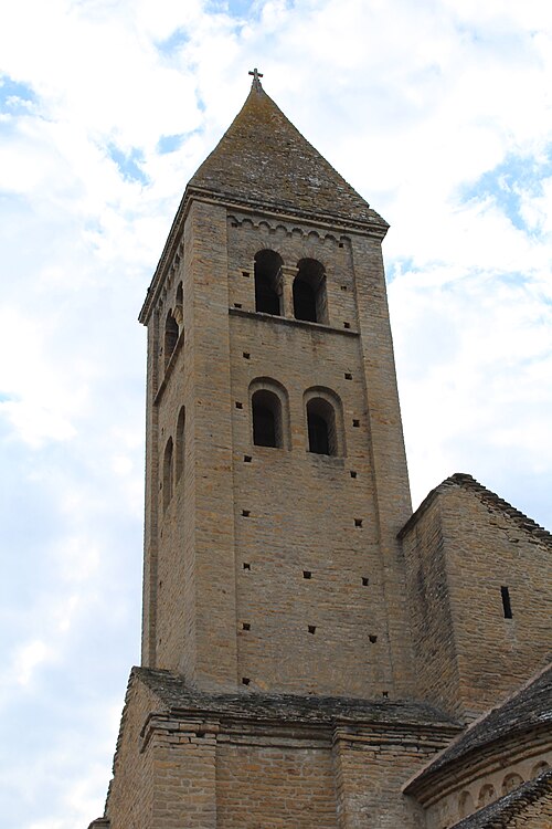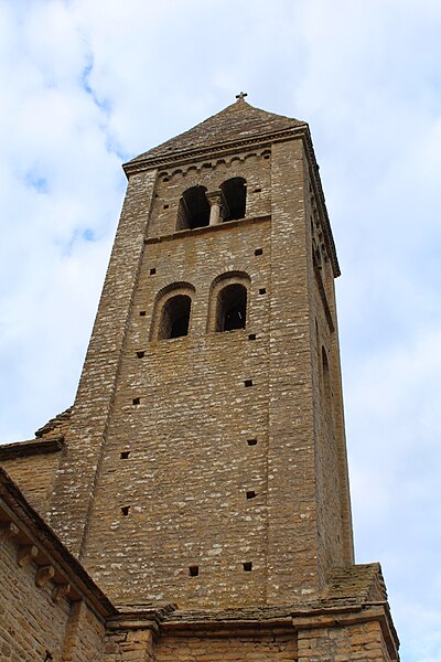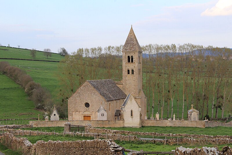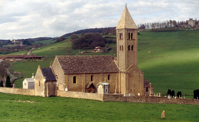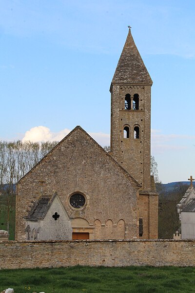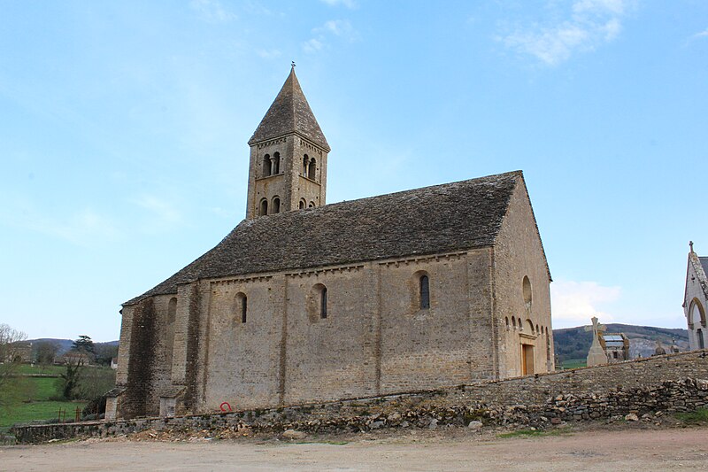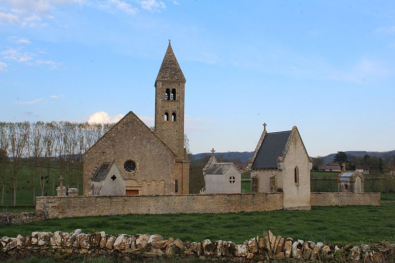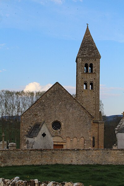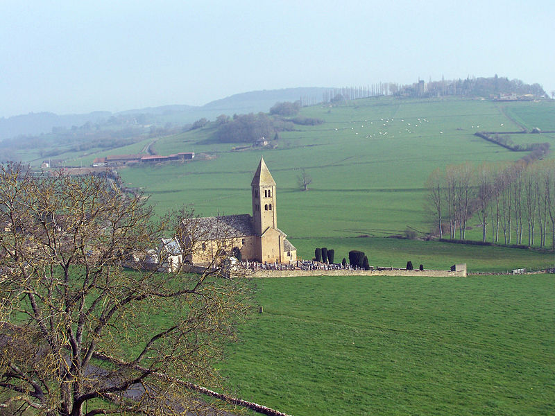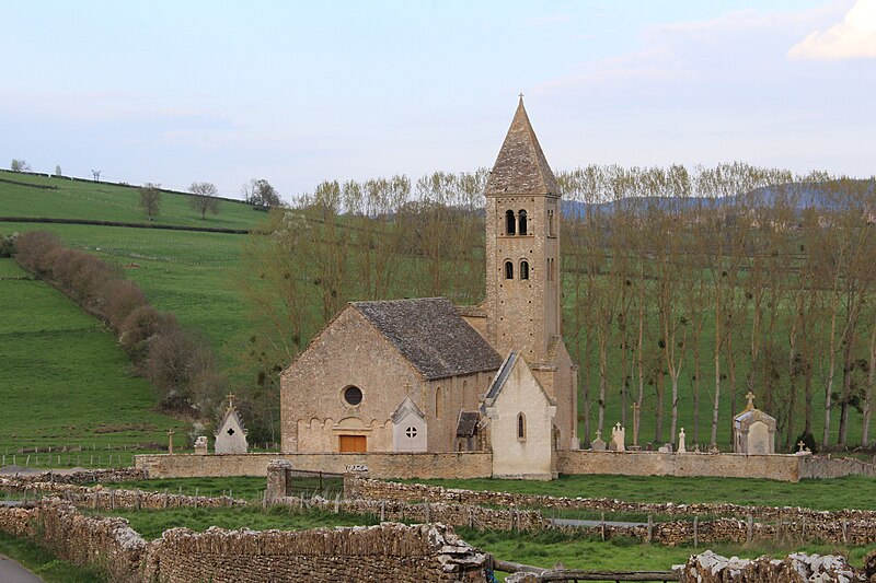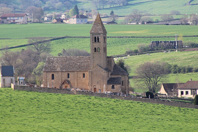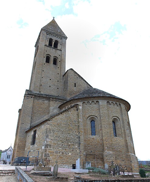 L'église Saint‑Blaise est un édifice roman situé à Mazille, en Saône‑et‑Loire, en Bourgogne‑Franche‑Comté. Implantée en contrebas du bourg, ses proportions se détachent harmonieusement sur le vallon verdoyant qui lui sert d'écrin. En 962, Adon, évêque de Mâcon, ajoute l'église de Mazille aux terres données aux moines de Cluny. L'édifice, sans doute construit peu avant et alors dédié à saint Julien, forma le centre d'un premier groupe d'habitat et correspond en partie à l'église actuelle. Classée au titre des monuments historiques par arrêté du 22 octobre 1913, l'église avait fait l'objet l'année précédente d'une demande de protection formulée par l'Académie de Mâcon auprès de la Commission des monuments historiques. L'Académie avait alors inscrit l'église de Mazille parmi une liste de douze monuments jugés parmi les plus anciens et intéressants de l'arrondissement de Mâcon. Sur le plan architectural, le chevet roman se compose d'une abside semi‑circulaire ornée de bandes lombardes, percée de fenêtres et couverte de lauzes. L'abside est surmontée d'un clocher roman percé de nombreux trous de boulin et ouvert par des baies cintrées géminées aux deux étages supérieurs. Les baies géminées de l'avant‑dernier étage sont séparées par un simple trumeau, celles du dernier étage par une colonne. L'ensemble du mobilier date principalement des XVIIIe et XIXe siècles, comprenant notamment une grille en fer forgé, un bénitier et des statues de la Vierge à l'Enfant et de sainte Philomène. L'église abritait autrefois un retable de Michel Bouillot sur le thème de l'Adoration des Bergers, désormais visible dans l'une des chapelles du collatéral nord de l'abbatiale Saint‑Philibert de Tournus.