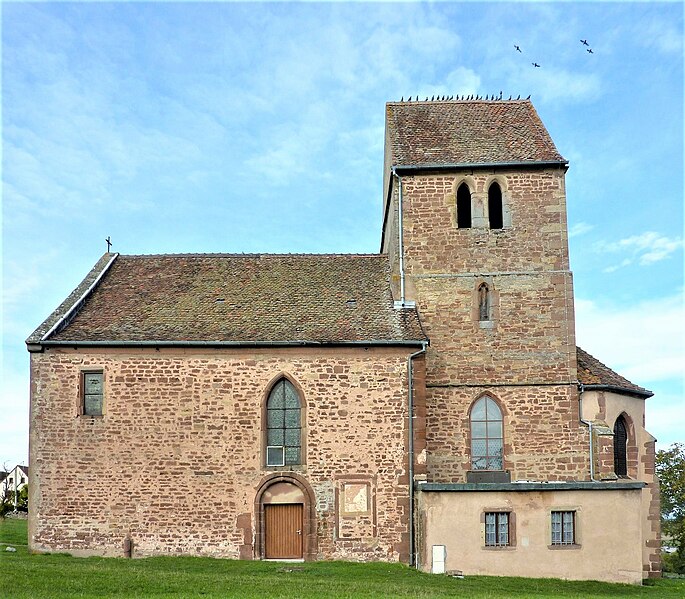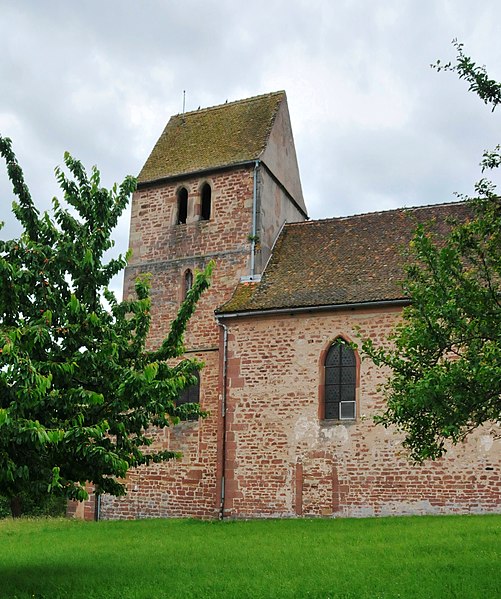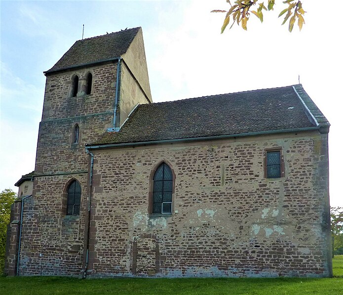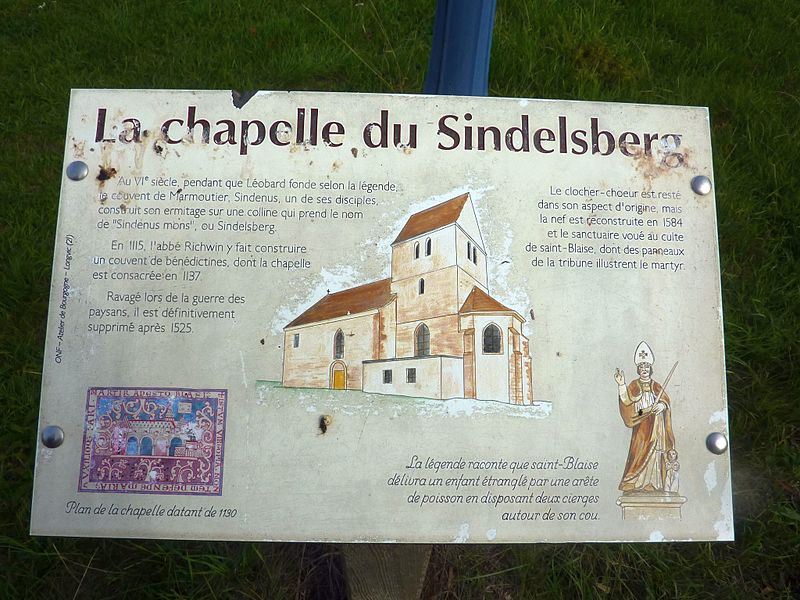 L’église Saint‑Blaise de Sindelsberg, située sur la commune de Marmoutier dans le Bas‑Rhin, dépendait du couvent de bénédictines fondé en 1115 par le prieur Richwin de l'abbaye de Marmoutier et placé sous la règle de saint Benoît durant l’abbatiat d'Adelon. Selon une charte conservée, ce monastère fut consacré en 1137 par le légat pontifical Théodewin ; d’autres notices mentionnent une consécration liée à la reconstruction du XIVe siècle, vers 1332. Le couvent, placé sous la protection de l’abbaye, fut incorporé à Marmoutier en 1488 ; à partir de cette date l’église devint une filiale desservie par un chapelain, les religieuses étant réparties dans d’autres établissements. Une petite communauté se réinstalla au début du XVIe siècle, mais le couvent fut définitivement supprimé après les destructions liées à l’insurrection de 1525. La tour et le chœur reprennent des élévations du XIVe siècle ; la nef fut reconstruite à la fin du XVIe siècle par l’abbé Gisbert Agricola (mentionné vers 1580 et parfois daté de 1584) et la tribune occidentale porte la date 1619. La façade a été restaurée en 1872, et la sacristie accolée au mur sud du chœur date de la fin du XIXe siècle. Des vestiges partiels du bâtiment conventuel situés au sud de l’église ont été relevés en 1913 par Hugo Rathgens ; aujourd’hui ne subsistent qu’une base de colonne et une colonnette accolées au mur sud de la nef, probablement d’époque romane. Des traces de mur à l’ouest laissent supposer que l’édifice primitif était plus long que l’église actuelle.