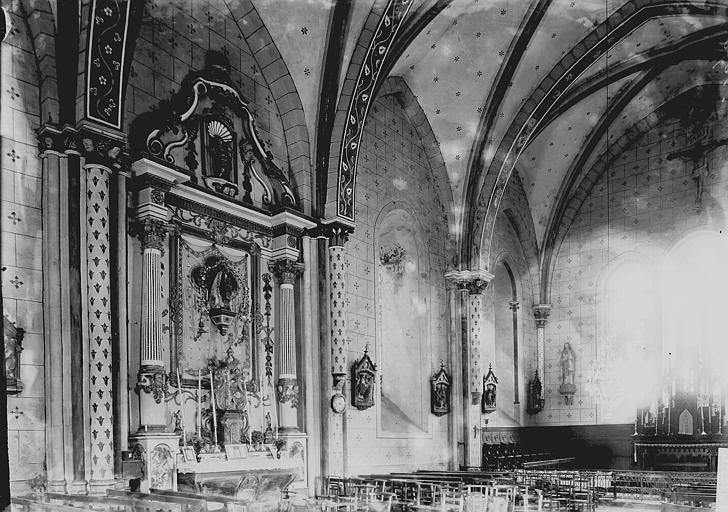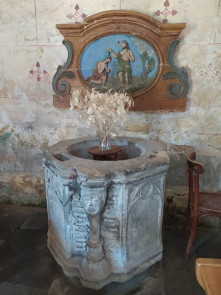 Plusieurs objets du mobilier sont protégés: une cloche datée de 1561, une cuve baptismale du XVIe siècle, un reliquaire et le retable de la Vierge du XVIIe siècle, ce dernier ayant été restauré en 1815. Une statue en bois représentant une Vierge en majesté, également classée, a été volée en 1983. Des photographies documentent notamment le retable de la Vierge, la tourelle d'escalier, les portails sud et ouest et les serrures du portail sud.