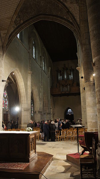 Le mobilier comprend un grand orgue de style baroque français construit en 1749 par le menuisier rémois Jean Labègue. L'instrument a été relevé et modifié en 1898 par Pierre Schyven, puis restauré entre 1988 et 1991 par Gaston Kern d'après les plans de Schyven. La partie instrumentale initiale provient de Pierre Aubé, facteur d'orgues du Roi : un premier jeu fut livré en 1751 et l'organiste Jean Lepage prit place ; la livraison finale eut lieu en 1756 après une tranche de travaux en 1752 menée par Jean Cochu. Cette partie instrumentale a été perdue à la suite de modifications du XIXe siècle et du bombardement du 10 juin 1940. Le monument comporte également une chapelle, un portail nord et divers éléments sculptés, dont un chien.