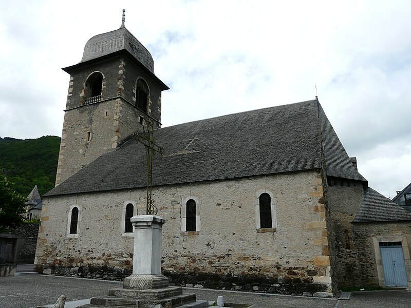 L'église est dominée par un important clocher coiffé d'un toit à l'impérial, dont la partie supérieure est percée de larges baies en plein cintre ornées de balustres. En vis-à-vis se trouve une abside à trois pans qui conserve d'étroites baies romanes aujourd'hui occultées. L'accès s'effectue par une porte en plein cintre ménagée à la base du clocher, encadrée de pilastres plats et surmontée d'un fronton orné d'un édicule à niche. À l'intérieur, la nef communique avec les bas-côtés par une série d'arcades en plein cintre reposant sur des piliers polygonaux à base carrée. Un narthex est aménagé sous le clocher et surmonté d'une tribune. Des peintures ont été mises au jour dans le chœur ; elles représentent le sacrifice d'Abraham et le Christ à Gethsémani, présentés sous forme de tableaux inscrits dans une architecture (fin XVe–début XVIe siècle). Le maître-autel et les retables latéraux en bois sculpté occupent le chœur et les chapelles latérales.
