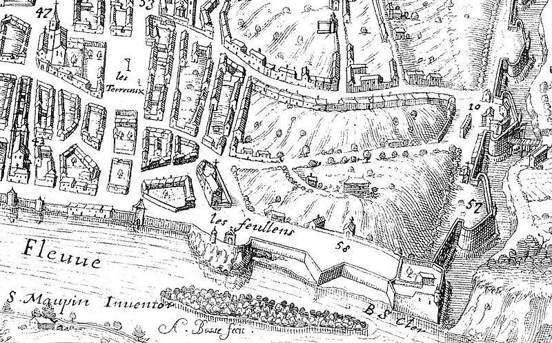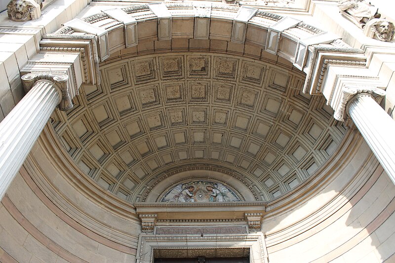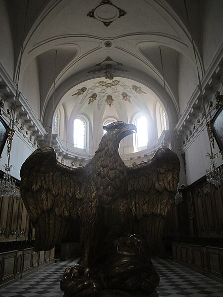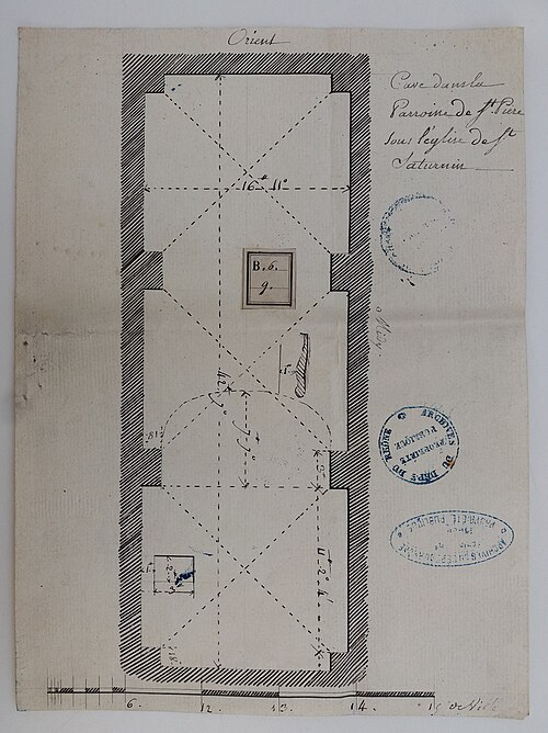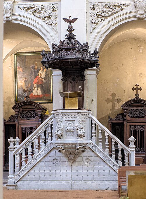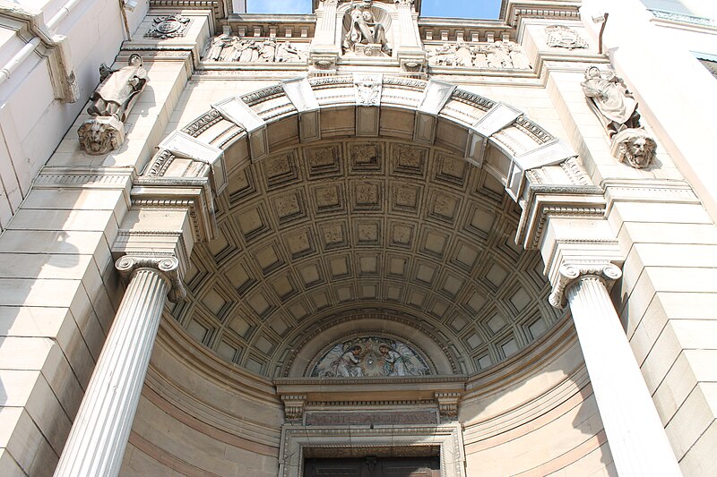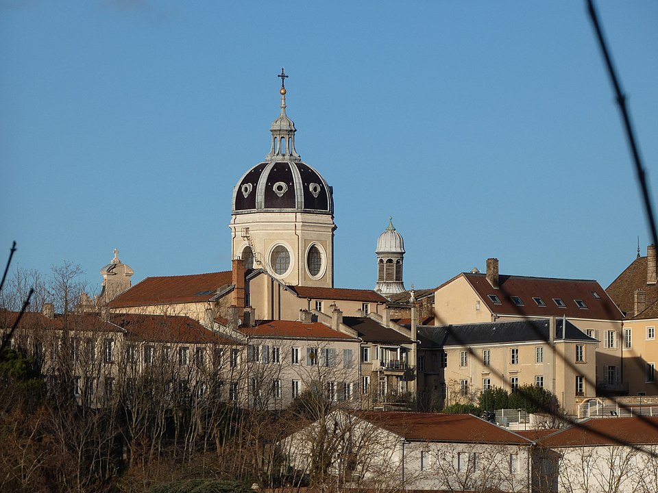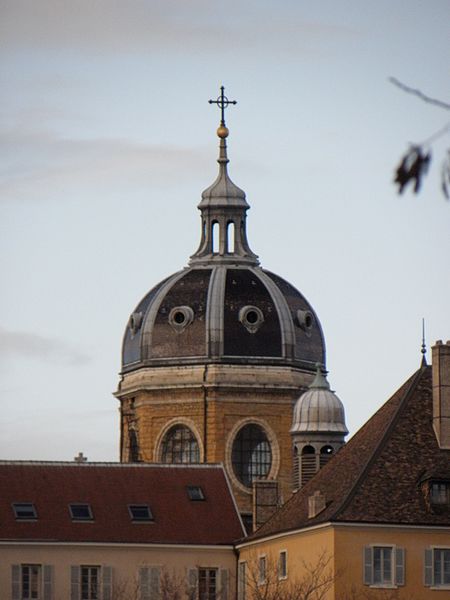 L'édifice présente un parti basilical malgré des transepts peu débordants, avec une nef centrale rythmée par huit colonnes de style toscan et deux bas‑côtés. La croisée du transept est surmontée d'une coupole sur tambour qui s'ouvre sur un chœur en hémicycle, flanqué de deux chapelles de plan carré prolongeant les collatéraux. Le clocher et la sacristie, situés à l'arrière du chœur, occupent un emplacement traditionnel des XVIIe et XVIIIe siècles. L'éclairage est principalement haut : dix fenêtres plein‑cintre en vis‑à‑vis prennent naissance au‑dessus de l'entablement et pénètrent dans la voûte en berceau, une demi‑lune orne le mur occidental et quatre fenêtres abaissées éclairent la coupole, tandis que les collatéraux, le chœur et leurs chapelles restent aveugles. Le porche, désaxé pour respecter l'alignement du quai, présente une façade sculptée dont l'abondance décorative contraste avec la sobriété intérieure.