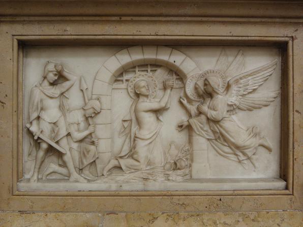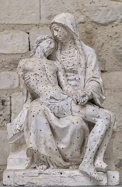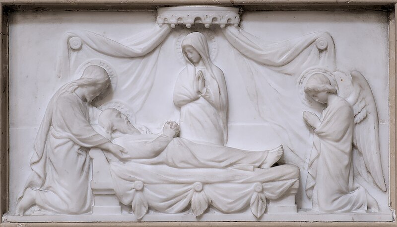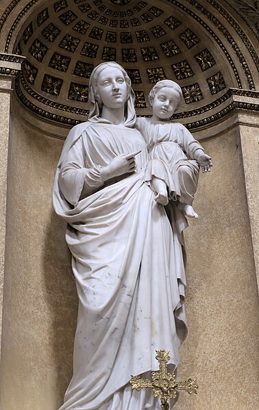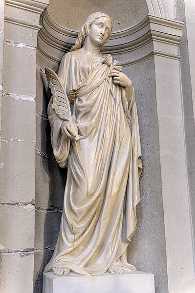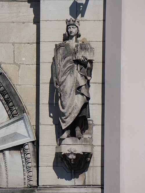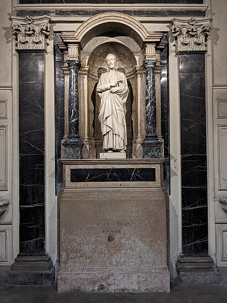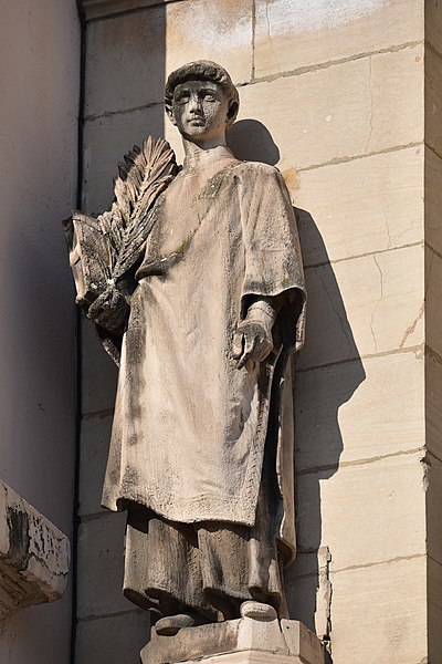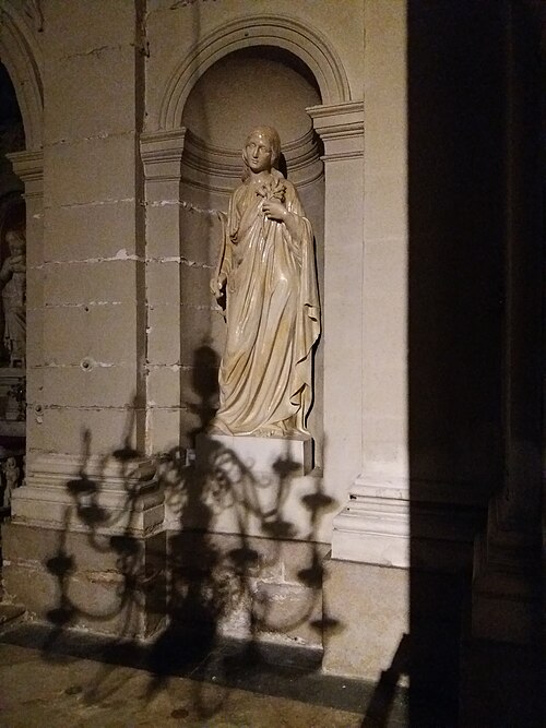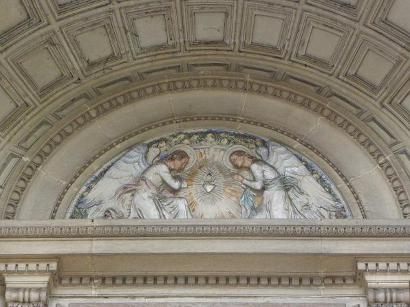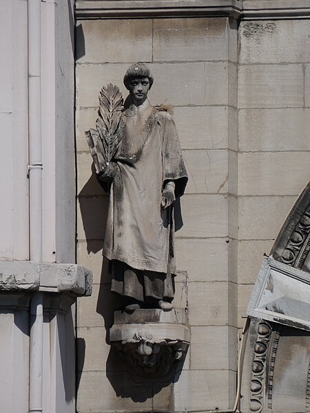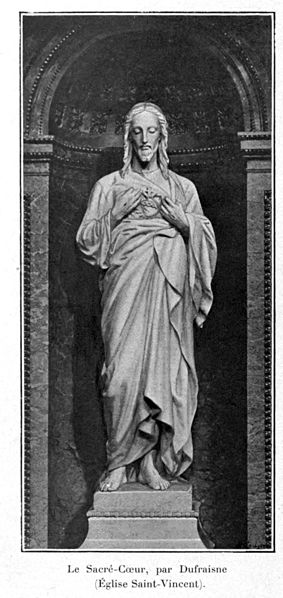 Les sculptures du porche, réalisées par Charles Dufraine, rappellent les vocables successifs de l'église : saint Louis à droite et saint Vincent à gauche ; Dufraine a également sculpté une frise d'anges musiciens encadrant une niche abritant une Vierge à l'Enfant, et le tympan présente une céramique d'inspiration florentine représentant deux anges adorant une croix. À l'intérieur, Dufraine a réalisé le groupe du baptême du Christ et un Sacré‑Cœur. Les transepts et leurs autels accueillent des statues d'allure plus classique, notamment saint Vincent, saint Louis et une Vierge signée Joseph‑Hugues Fabisch. Depuis 1996, le chœur est orné de peintures de J.F. Hamelin : le triptyque Lumière d'Emmaüs, une Annonciation et le tableau Le Créateur au cul‑de‑four de l'abside.
