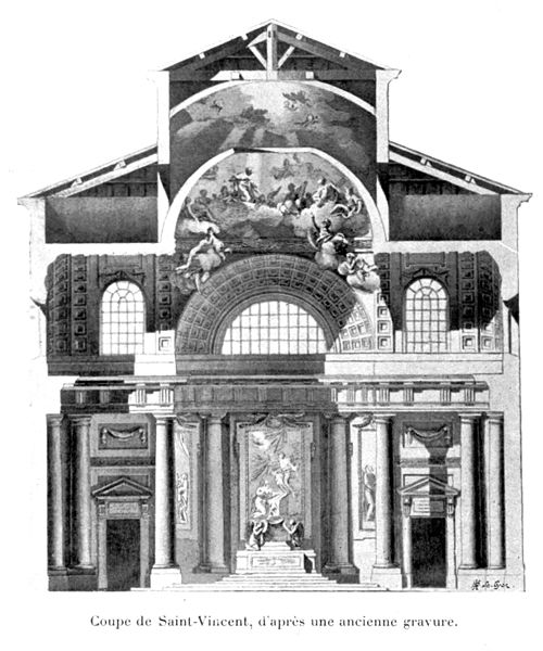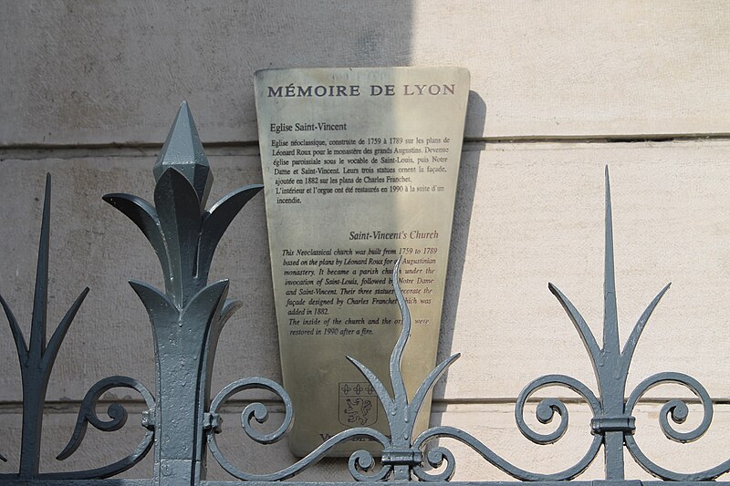L'édifice actuel, essentiellement du XVIIIe siècle, a remplacé la chapelle du couvent qui menaçait ruine. La première pierre fut posée le 6 octobre 1759 et la consécration eut lieu le 4 juin 1789 ; l'église était alors appelée Saint‑Louis en hommage au dauphin qui contribua financièrement à sa construction. La Révolution entraîna l'expulsion des Augustins et la transformation de l'église en entrepôt, puis en annexe de l'hôpital général durant le siège de Lyon en 1793, tandis que les bâtiments monastiques furent attribués à l'armée avant de devenir l'école de la Martinière en 1831. En 1791, l'église devint paroissiale pour compenser la suppression des paroisses Notre‑Dame de la Platière et Saint‑Vincent, mais sa capacité s'avéra insuffisante. En 1861, le conseil de Fabrique décida d'allonger la nef en déplaçant la façade vers le quai selon un projet de l'architecte Charles Franchet ; la façade actuelle date de ces travaux qui se poursuivirent jusqu'en 1882. En 1863, le vocable fut modifié en Notre‑Dame‑Saint‑Vincent afin d'éviter la confusion avec l'église Notre‑Dame Saint‑Louis de la Guillotière. Dévastée par un incendie le 12 décembre 1987, elle a été rénovée par la ville de Lyon et rouverte au culte le 29 novembre 1992.
