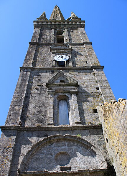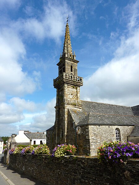 L'église est implantée dans le village du même nom, au sud-est du bourg de Sizun. D'abord simple chapelle tréviale, elle devint succursale de Sizun en 1748 puis fut érigée en église paroissiale en 1829. L'édifice, hétérogène, est construit en schiste et en granite et résulte de transformations progressives d'un premier sanctuaire. En 1663 on ajoute un chevet polygonal à noues multiples flanqué d'une sacristie, puis, au tournant des XVIIe et XVIIIe siècles, une tour-clocher de type léonard est élevée. En 1840 une troisième campagne agrandit l'église par l'adjonction de bas-côtés et d'un porche méridional de style néoclassique, entraînant une profonde recomposition de l'espace intérieur : les murs supprimés de la nef sont remplacés par deux séries de colonnes en bois peintes en faux marbre qui supportent la charpente lambrissée. La quasi-totalité des enduits intérieurs et du sol ont été refaits au ciment durant la seconde moitié du XXe siècle. L'église est entourée d'un cimetière dont l'emprise s'est accrue au XIXe siècle, et où se dresse une croix-calvaire remaniée au XVIIIe siècle.