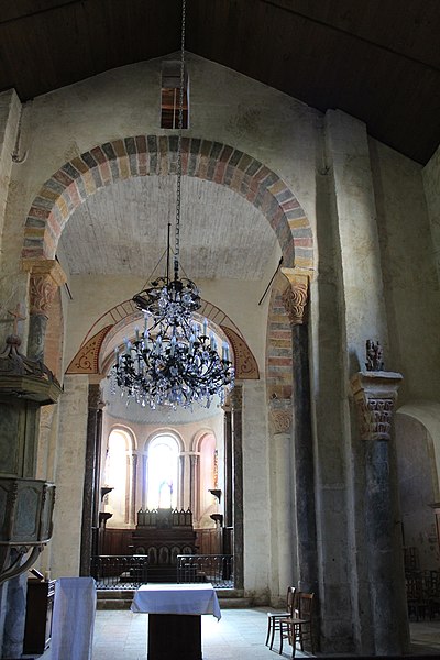 De l'édifice du XIIe siècle subsistent le transept et l'abside, flanqués de deux absidioles. La nef et ses bas-côtés primitifs ont été réunis en un vaisseau unique au XVIe siècle. Des remaniements aux XVIIe, XVIIIe et XIXe siècles ont modifié le caractère général de l'église, en particulier sa partie occidentale. Le clocher, qui surmonte la croisée du transept, a été refait en 1631 puis remanié en 1843 ; il est animé de petites tourelles d'angle. À l'intérieur, le transept, l'abside et les absidioles sont conservés en grande partie et présentent de beaux chapiteaux ornés de motifs floraux. Dans la nef, datée du XVIe siècle, un plafond en voussures a remplacé le voûtement primitif. L'ensemble illustre la superposition d'éléments romans et de transformations postérieures.