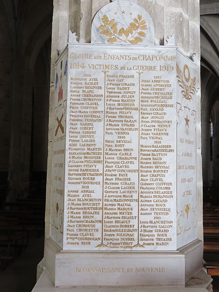 L'église Saint-Caprais se situe à Craponne-sur-Arzon, en Haute-Loire. La fondation d'une église est mentionnée à la fin du XIIe siècle. L'édifice actuel, de style gothique languedocien — type assez rare dans le Velay — a été élevé aux XIVe et XVe siècles puis reconstruit aux alentours de 1500. Il a remplacé la chapelle castrale à la suite d'un don des familles de Chalencon et de Polignac ; le cimetière paroissial se trouve à proximité immédiate. L'église comprend aujourd'hui cinq travées de nef, une travée de chœur et une abside pentagonale. La troisième travée est la partie la plus ancienne, vraisemblablement du XIVe siècle, avec membrures d'ogives et retombées sculptées ornées d'angelots. Les deuxième et quatrième travées ainsi que le clocher sont datés de 1416, tandis que la première travée occidentale et la façade remontent à 1782. Le toit d'ardoise et la flèche du clocher datent du XIXe siècle. Douze chapelles s'alignent le long des ailes latérales ; parmi elles figurent la chapelle Sainte-Barbe, la plus ancienne (XVe siècle), la chapelle Sainte-Régis, où ont été enterrées certaines religieuses de l'établissement Saint-Joseph, ainsi que les chapelles du Saint-Rosaire et de Sainte-Anne. Le mobilier comprend une Descente de croix de Guy François (1640), des boiseries du chœur et un socle de statue de Pierre Vaneau (XVIIe siècle), ainsi que des boiseries et une chaire réalisées par Gabriel Samuel en 1735, sculptées en bas-reliefs représentant les quatre évangélistes et saint Caprais. Les vitraux datent de 1866. L'église est inscrite au titre des monuments historiques par arrêté du 2 juin 1969, à l'exception du clocher moderne.