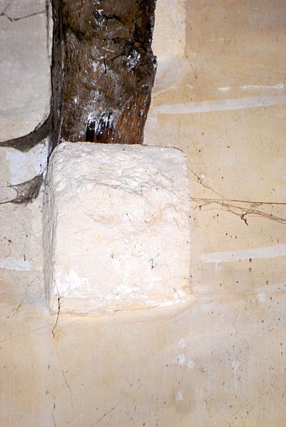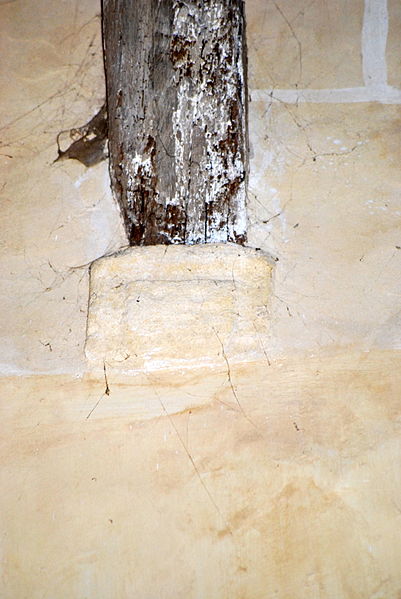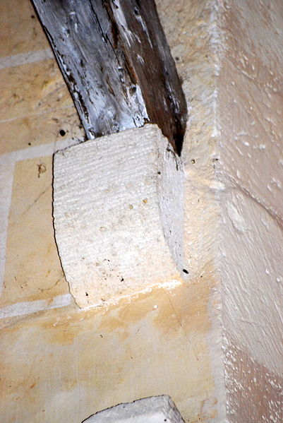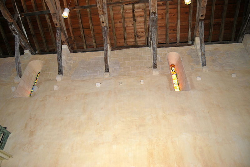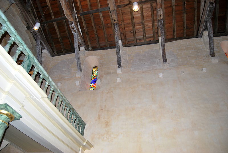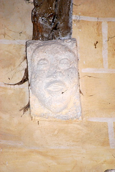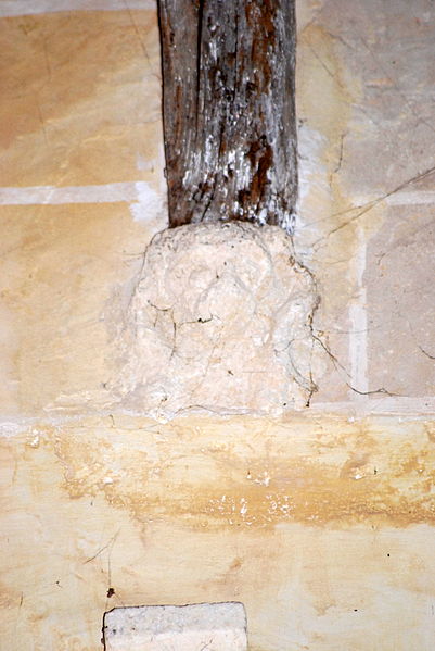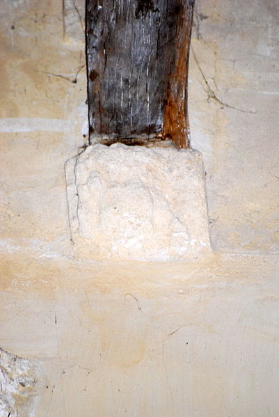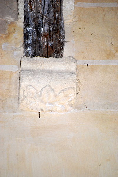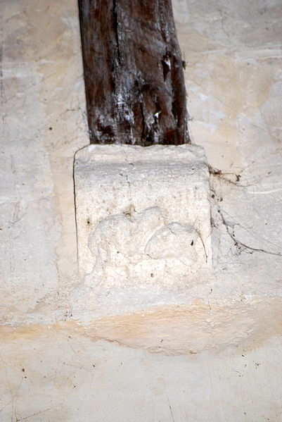 Parmi les chapiteaux des fenêtres, le chapiteau occidental de la fenêtre nord porte l'image d'un lionceau en position héraldique, la colonnette orientale étant végétale. À la fenêtre sud, un chapiteau présente un félin en interaction avec un homme, surmonté d'un petit personnage à tête d'oiseau ; le sens de cette fable reste obscur. Le chapiteau nord de la fenêtre orientale montre une sirène bicaudale aux deux petites poitrines, placée dans la fenêtre axiale du chevet, situation observée également dans d'autres églises locales. Le chapiteau sud de la fenêtre orientale offre une composition pseudo-héraldique où deux mammifères à tête d'oiseau ou de reptile flanquent un protomé de lion, leurs queues se transformant en lianes ; cette mise en scène évoque des attributs du péché. Dans la nef subsistent quelques petites consoles hautes le long des murs latéraux, qui servent d'appui aux entraits moisés et dont certaines portent des sculptures.