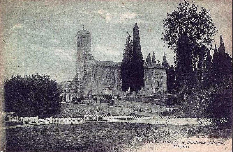 L'église Saint-Caprais est une église catholique située à Saint-Caprais-de-Bordeaux, en Gironde. Elle se trouve à l'ouest du bourg, sur la route départementale D240 en direction de Camblanes-et-Meynac. Le premier édifice remonte vraisemblablement au XIe siècle, implanté sur des fondations d'une église paléochrétienne des Ve ou VIe siècles. Une nouvelle église construite au XIIe siècle a laissé l'abside voûtée en cul-de-four et l'élévation de la façade occidentale. À l'entrée de la nef se trouvent un puits et un enfeu creusé dans le mur sud de l'abside. L'abside a été surélevée et la nef consolidée au XVe siècle. Le clocher est élevé au XVIIIe siècle; la cloche actuelle provient de l'ancienne église Saint-Jean de Madirac, démolie entre 1815 et 1825 lors de la réunion des deux paroisses. Le porche et les baies ont été remaniés au XIXe siècle, et des restaurations ont eu lieu au XXe siècle. L'édifice est inscrit au titre des monuments historiques en 1925.