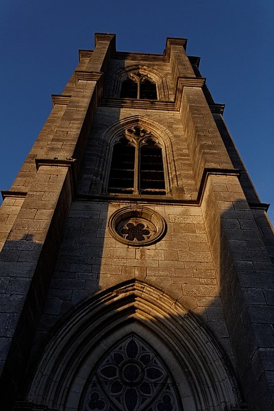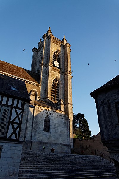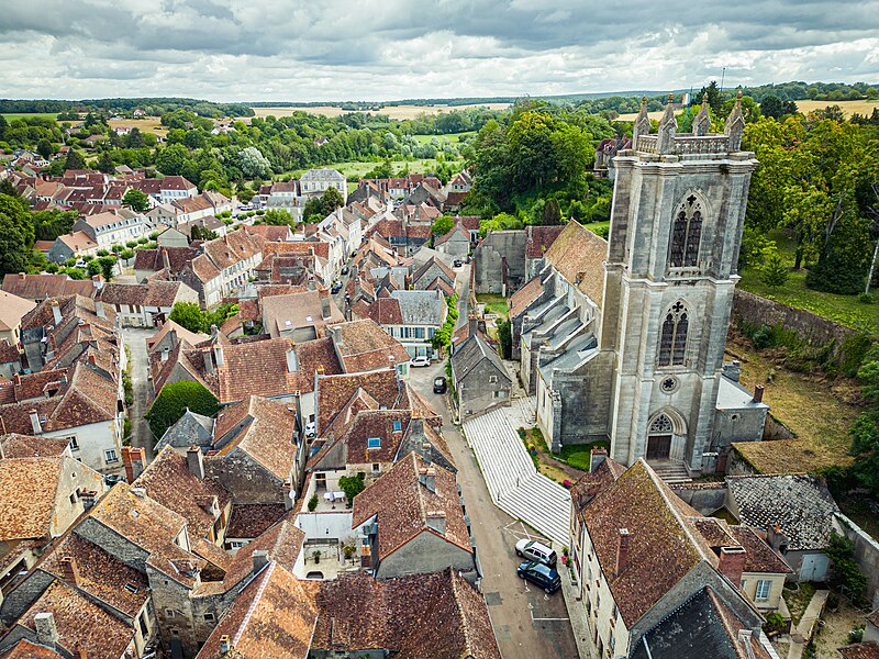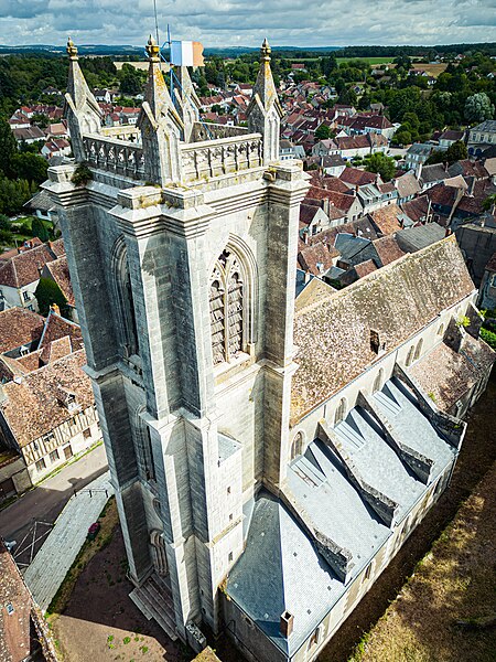 L'église Saint-Caradeuc, élevée au pied des remparts d'un château disparu, domine un tissu de maisons anciennes. Le chœur du XVe siècle conserve son élévation, ses baies élancées, une voûte sexpartite et une charpente également datée du XVe siècle. La nef s'est détériorée aux XVIe et XVIIe siècles au point que l'édifice fut désaffecté au début du XIXe siècle pour des raisons de sécurité. La reconstruction menée par l'architecte Paillard entre 1839 et 1842, parfaitement documentée aux Archives départementales de la Nièvre, prolonge le chœur gothique et illustre le renouveau d'intérêt pour l'architecture médiévale au XIXe siècle. Construite sur un terrain en pente et flanquée de maisons, l'église présente un grand emmarchement sur la façade nord‑ouest et un plan relativement irrégulier : une nef centrale flanquée de deux collatéraux, des chapelles au nord‑ouest et au sud‑est, et un chœur étroit également épaulé par des chapelles. La façade sud‑ouest, opposée au chœur, est dominée par un haut clocher carré à étages ; au registre inférieur, un grand portail en tiers‑point ouvre sur le porche situé sous le clocher. Le clocher est pourvu de contreforts et de corniches moulurées qui délimitent les niveaux ; sur trois de ses faces, des baies en tiers‑point à remplage néo‑rayonnant et des abat‑sons éclairent l'intérieur. La flèche projetée par Paillard sur ses dessins de 1839‑1842 n'a pas été réalisée et une balustrade couronne l'ensemble. La façade nord‑ouest, très irrégulière, associe l'élévation du chœur gothique et ses chapelles, une petite maison de style Directoire adossée à l'église, puis, en haut du grand escalier, un portail gothique orné de piédroits, pinacles, voussures et tympan aveugle ; à droite se trouve une chapelle près du clocher qui porte en lettres peintes la devise républicaine. Côté sud‑est, la façade présente également des irrégularités sans recul ; contreforts et culées sont englobés dans la toiture des chapelles qui ouvrent sur le collatéral, tandis que le bas‑côté se montre beaucoup plus bas que la nef et le chœur. L'intérieur reflète ces dispositions extérieures : clocher‑porche en saillie, trois nefs formant cinq travées et chœur arrondi. Chœur et nef sont voûtés d'arêtes avec ogive faitière ; au premier étage du clocher, une tribune s'ouvre sur la nef centrale. Dans une chapelle de plan carré côté nord‑ouest, des ogives retombent sur de beaux culots sculptés symbolisant les quatre évangélistes. Le chœur, très élancé, est éclairé par trois hautes lancettes ; la nef présente la même élévation. De grands arcs en tiers‑point ouvrent sur les bas‑côtés et sont séparés par de massifs pilastres posés sur de hauts soubassements reposant sur des bases prismatiques, conférant à l'ensemble une grande homogénéité. Seule la différence de taille de pierre permet de distinguer la partie de l'époque 1500 et l'extension réalisée par Paillard entre 1839 et 1842. L'élévation de la nef centrale comporte un niveau de grandes arcades, un niveau aveugle et un niveau de fenêtres hautes sous les arcs formerets. La belle charpente du chœur à chevrons portant ferme est probablement d'origine. L'étude de l'édifice, de ses élévations et des plans de Paillard permet de localiser aisément les parties du XVe siècle et l'extension du XIXe siècle.