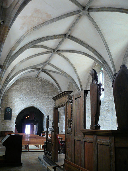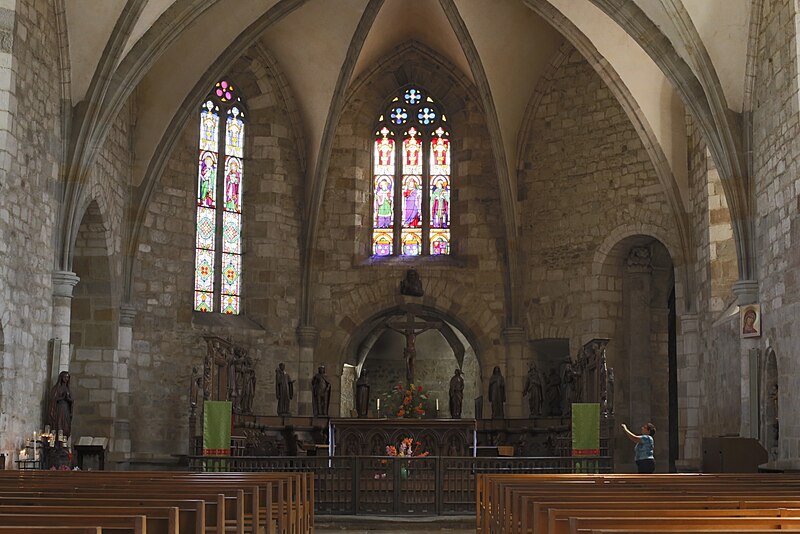 L'église Saint-Césaire, également appelée Saint‑Sulpice, se situe au cœur du bourg de Maurs, dans la Châtaigneraie cantalienne. Elle est le dernier vestige d'une abbatiale reconstruite à plusieurs reprises. Un prieuré bénédictin dépendant de l'abbaye Saint‑Géraud d'Aurillac existait à Maurs au Xe siècle, puis une église romane édifiée par les moines de l'abbaye Saint‑Victor de Marseille fut construite entre 1065 et 1080. Pendant la guerre de Cent Ans, des bandes anglo‑gasconnes détruisirent l'abbaye, qui fut entièrement reconstruite à la fin du XIVe siècle. Le chœur et le portail occidental datent du début du XVe siècle, comme l'indique la date de 1406 portée sur un vitrail disparu; un prix‑fait du 30 janvier 1426 fixe la réparation du clocher, contrat passé avec le maçon Pierre Costes sous l'abbatiat de Pierre V. Au XVe et au XVIe siècles, des chapelles furent ajoutées de part et d'autre du chœur, notamment la chapelle Saint‑Césaire et la chapelle Saint‑Georges, cette dernière étant démolie en 1805. Les stalles datent de la période 1532‑1547. L'abbaye fut saccagée par des protestants (Huguenots) à la fin du XVIe siècle et connut deux campagnes de restauration avant la Révolution, dans les années 1670 et sous le dernier abbé, Sénézergues. Les bâtiments monastiques furent progressivement abandonnés à partir de 1754, le monastère fut supprimé en 1768, transformé en église paroissiale selon un décret de 1785, puis vendu en 1791; le cloître fut rasé et l'église servit de grenier à fourrage en 1793, l'abbatiale prenant alors la fonction de paroissiale après la destruction de l'ancienne église Saint‑Sulpice pendant la Révolution. L'édifice est classé au titre des monuments historiques par arrêté du 27 avril 1970. Architectoniquement, il illustre le type méridional de l'église de la parole du XVe siècle : une nef à trois travées voûtées d'ogives et un chœur pentagonal. Sous le clocher, un narthex voûté d'ogives présente des arêtes reposant sur des culots ornés de visages humains. La base Palissy recense et décrit neuf objets du mobilier classés ou inscrits.
