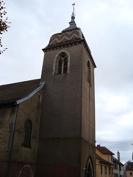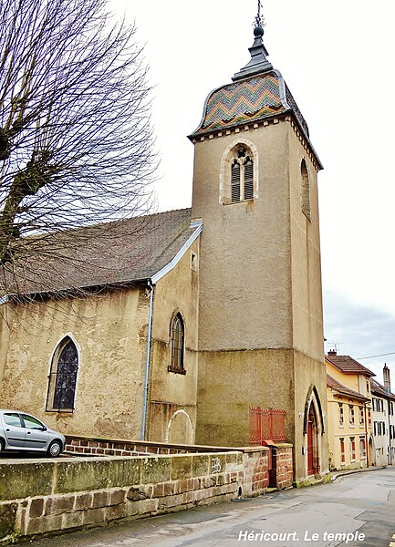 L'église luthérienne Saint-Christophe se situe au centre d'Héricourt, en Haute-Saône. Ne pas la confondre avec l'église catholique Saint-Christophe, construite juste à côté à la fin du XIXe siècle. Affectée au culte luthérien en 1562, elle dépendait de l'inspection ecclésiastique de Montbéliard de l'Église évangélique luthérienne de France, devenue en 2012 la région Est‑Montbéliard de l'Église protestante unie de France. Fondée aux XIe et XIIe siècles, l'édifice résulte de plusieurs campagnes de construction et présente des éléments romans et de gothique primitif. De plan originellement rectangulaire, la nef se composait de deux travées latérales et d'une travée centrale plus large, et deux chapelles ont été ajoutées sur les côtés nord et est grâce aux donations de Jean Pouisard et Jean Perdrix. De style franc-comtois, il se distingue par un clocher comtois qui intègre le porche et forme la façade. Une dizaine de pierres tombales de notables du XVIe siècle, autrefois dans le chœur, ont été déplacées et sont désormais scellées sur le mur extérieur du temple face à l'église. À l'intérieur, on note le caractère massif des pilastres et une charpente en chêne structurée en croix de Saint‑André. Sous l'un des vitraux contemporains, une porte latérale porte le blason des princes de Fürstenberg, seigneurs d'Héricourt au début du XVIe siècle. Une cloche, tombée et fêlée lors de l'incendie du 22 avril 1976, est exposée dans l'entrée et n'a plus que valeur décorative. Les vitraux, très endommagés lors des combats de 1944, ont été refaits de manière moderne ; le verrier s'est inspiré des couleurs de la mosquée bleue d'Istanbul et a illustré des paraboles de Jésus ; ils ont été dessinés par l'industriel et directeur de l'hôpital Jean Pierre Bretegnier. L'orgue, installé en 1923 à l'initiative du pasteur Charles Parrot, fut inauguré en présence d'Albert Schweitzer ; il figure à l'inventaire des monuments historiques et a été rénové entre 2003 et 2005. Le ministère de la Culture recense parmi les éléments mobiliers remarquables un service de communion protestant du début du XIXe siècle, comprenant une aiguière, une coupe, un plat et une boîte pour le pain, ainsi qu'un tableau du XVIe siècle intitulé "Le Christ à la colonne". Construite avant la Réforme, l'église devint luthérienne en 1562 suite à l'acquisition du territoire par les ducs de Wurtemberg. Pendant l'occupation française d'Héricourt en mai 1700, l'édifice fut soumis au régime du simultaneum, utilisé tant par les catholiques que par les protestants, régime qui perdura jusqu'en 1887. Par la suite, elle redevint une église exclusivement luthérienne et, depuis le 2 février 1987, appartient à la paroisse luthérienne du Mont‑Vaudois regroupant plusieurs localités. Classée aux monuments historiques en 1995, elle a vu son clocher entièrement rénové en 1991 grâce au legs de Madame Louise Comte.