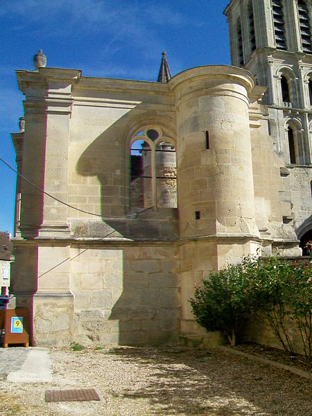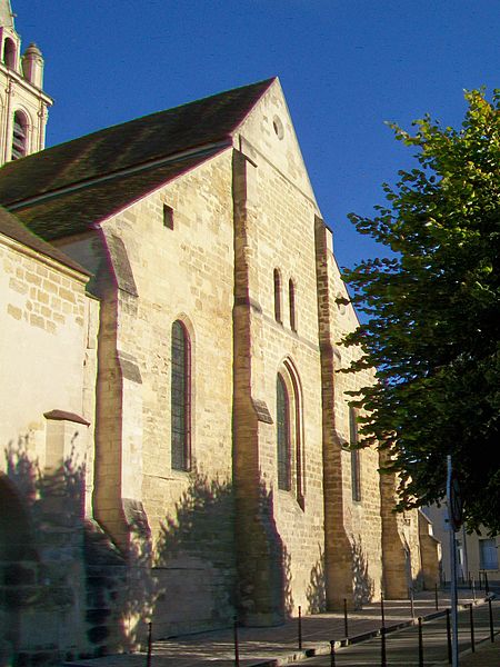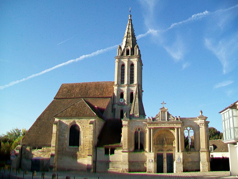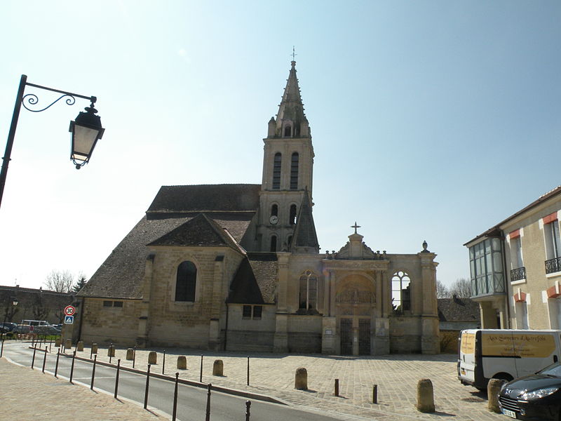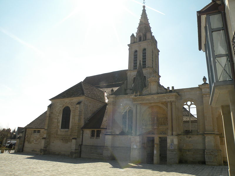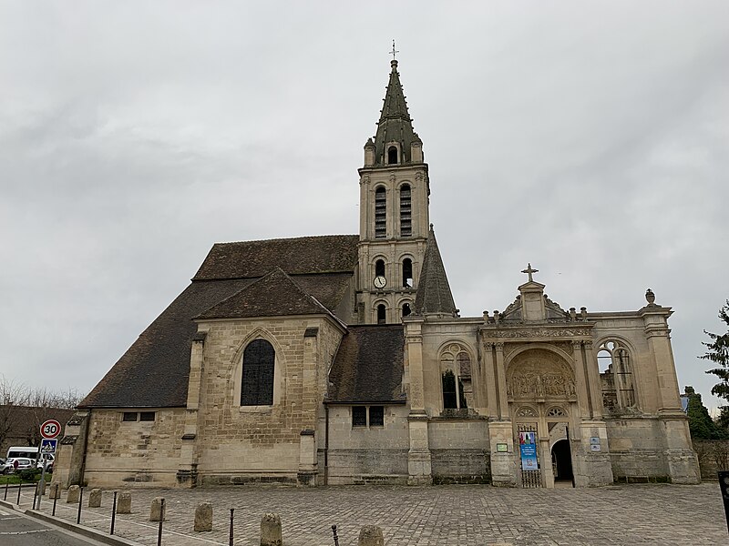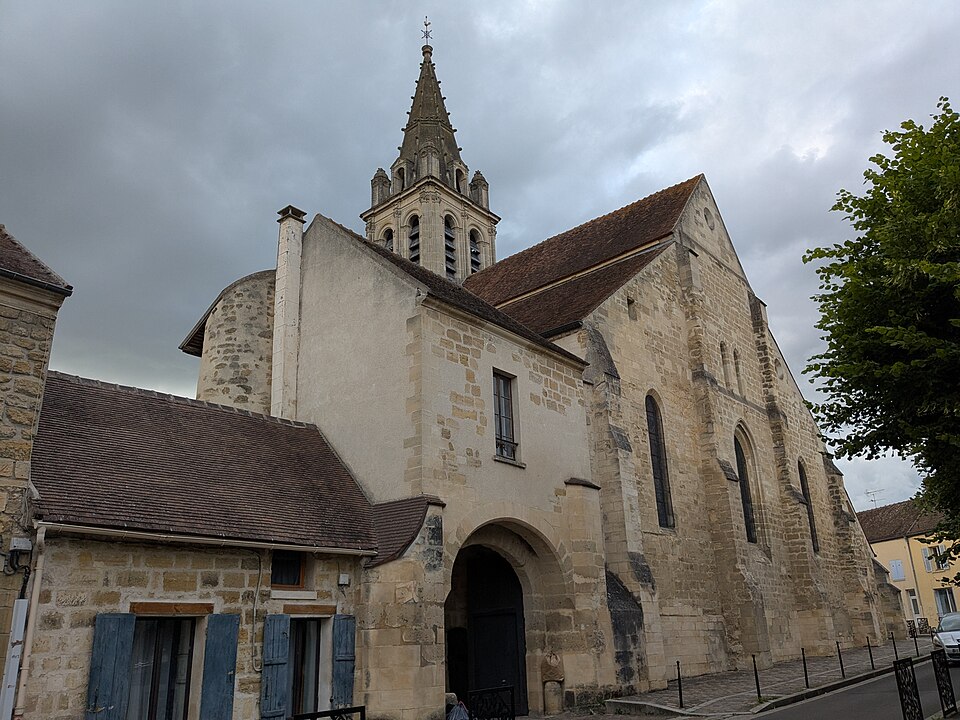 L'édifice s'élève rue de Neuville ; le chevet donne sur la voie publique et le vaste parvis au nord correspond à l'ancien cimetière, tandis qu'un parking occupe l'extrémité orientale de la parcelle. La façade nord Renaissance est visible depuis une impasse à l'ouest du parvis, la façade sud se découvre en franchissant la porte fortifiée de l'ancienne prévôté, et l'accès intérieur principal se fait depuis la cour formée par le double bas-côté nord inachevé. À gauche du bâtiment, une petite porte ouvre sur un oratoire ; l'entrée courante se situe au fond de la cour, par le porche aménagé à droite.