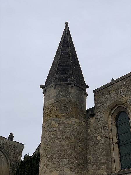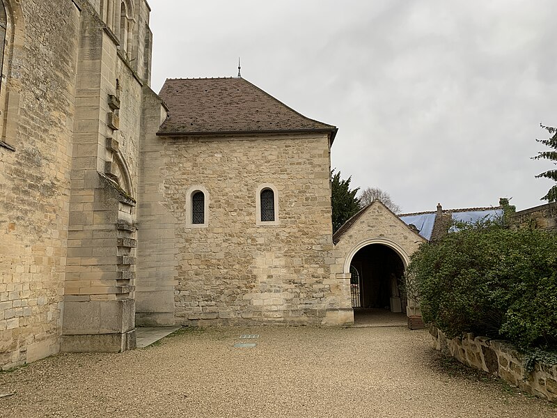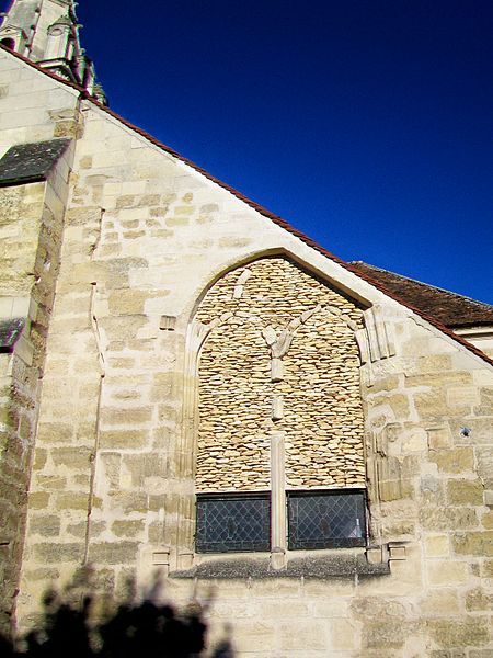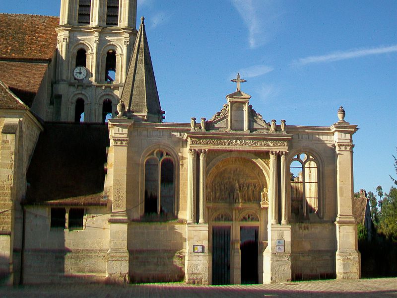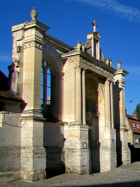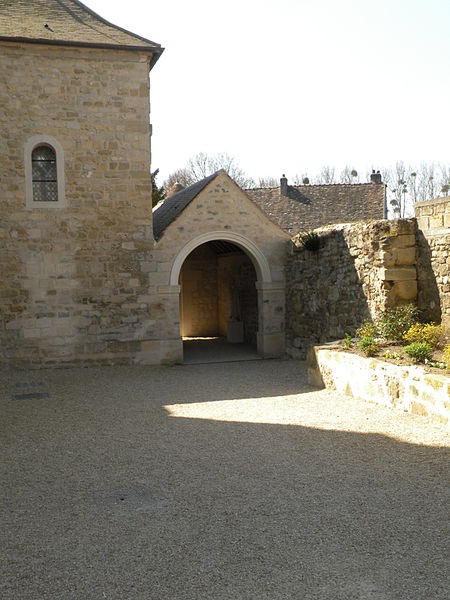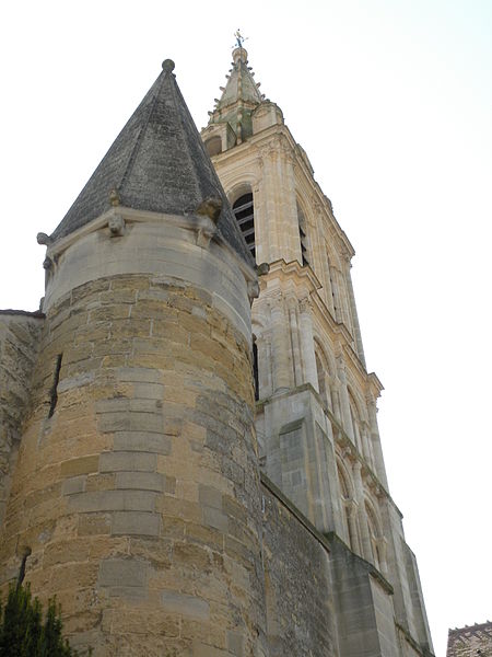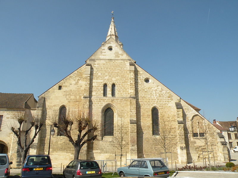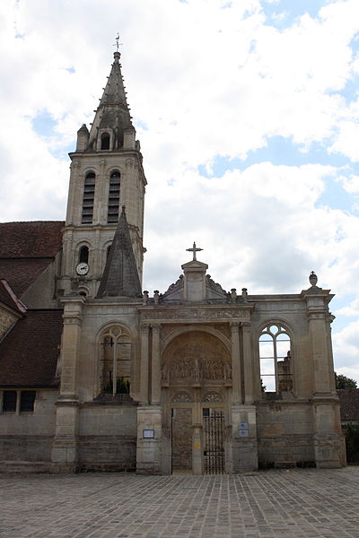 L'édifice s'élève rue de Neuville ; le chevet donne sur la voie publique et le vaste parvis au nord correspond à l'ancien cimetière, tandis qu'un parking occupe l'extrémité orientale de la parcelle. La façade nord Renaissance est visible depuis une impasse à l'ouest du parvis, la façade sud se découvre en franchissant la porte fortifiée de l'ancienne prévôté, et l'accès intérieur principal se fait depuis la cour formée par le double bas-côté nord inachevé. À gauche du bâtiment, une petite porte ouvre sur un oratoire ; l'entrée courante se situe au fond de la cour, par le porche aménagé à droite.