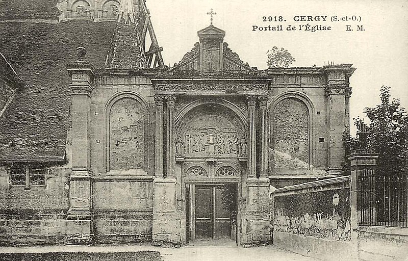 L'histoire se lit dans ses phases successives : une chapelle cimetièriale, une chapelle carolingienne, des agrandissements romans aux XIe–XIIe siècles, puis une transformation gothique et des projets d'extension Renaissance partiellement réalisés. En 1120 la petite église et les dîmes de Cergy furent données à l'abbaye de Saint-Denis, la paroisse fut alors constituée et l'abbaye exerça durablement la seigneurie sur le lieu. La seconde église romane, construite au second quart du XIIe siècle, a conservé essentiellement la base du clocher ; ses arcades et ses chapiteaux de 1130–1140 ont fourni la base des reconstitutions modernes et des datations. Au XIIe siècle tardif ou vers 1150, le chœur roman primitif fut remplacé par un chœur de type roman tardif ou gothique primitif, voûté d'ogives, dont subsistent des chapiteaux à feuilles superposées. Dès le début du XIIIe siècle, le chœur fut reconstruit en six travées carrées, donnant au vaisseau central et aux collatéraux une unité de hauteur et un plan en trois par trois travées, configuration rare dans le Vexin français. Les combles élevés au-dessus de cet ensemble et l'ordonnancement des poutres témoignent d'une utilisation probable des combles comme grenier pour l'abbaye de Saint-Denis. Au XVIe siècle, le clocher reçut un troisième étage et une flèche en pierre ; le vaste projet d'agrandissement de la nef et des bas-côtés, illustré par le portail Renaissance, demeura inachevé en raison des guerres de religion.