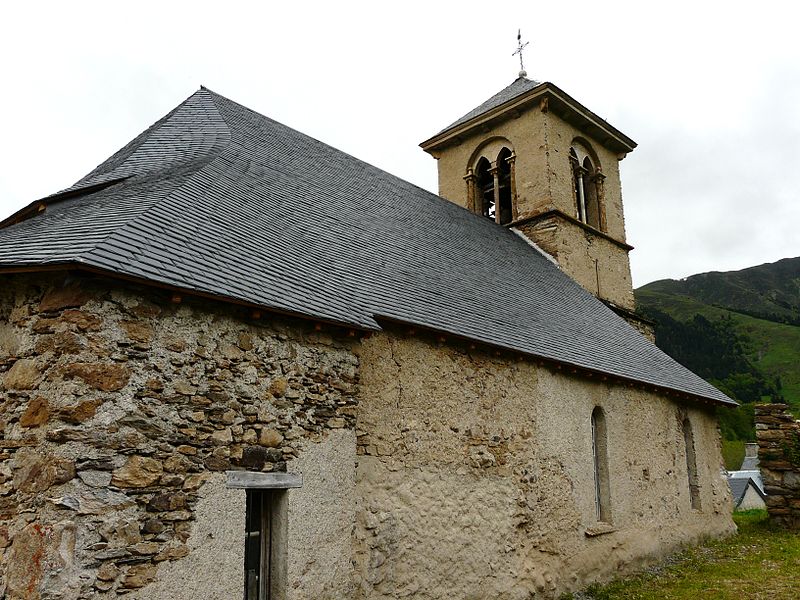 Petite église de montagne probablement édifiée à la fin du Moyen Âge. Son plan originel comprenait une nef unique de deux travées prolongée par un chevet à cinq pans ; des bas-côtés y furent ajoutés à l'époque moderne. Au XIXe siècle, d'importants travaux furent entrepris, notamment la surélévation du clocher et la reconstruction des bas-côtés.